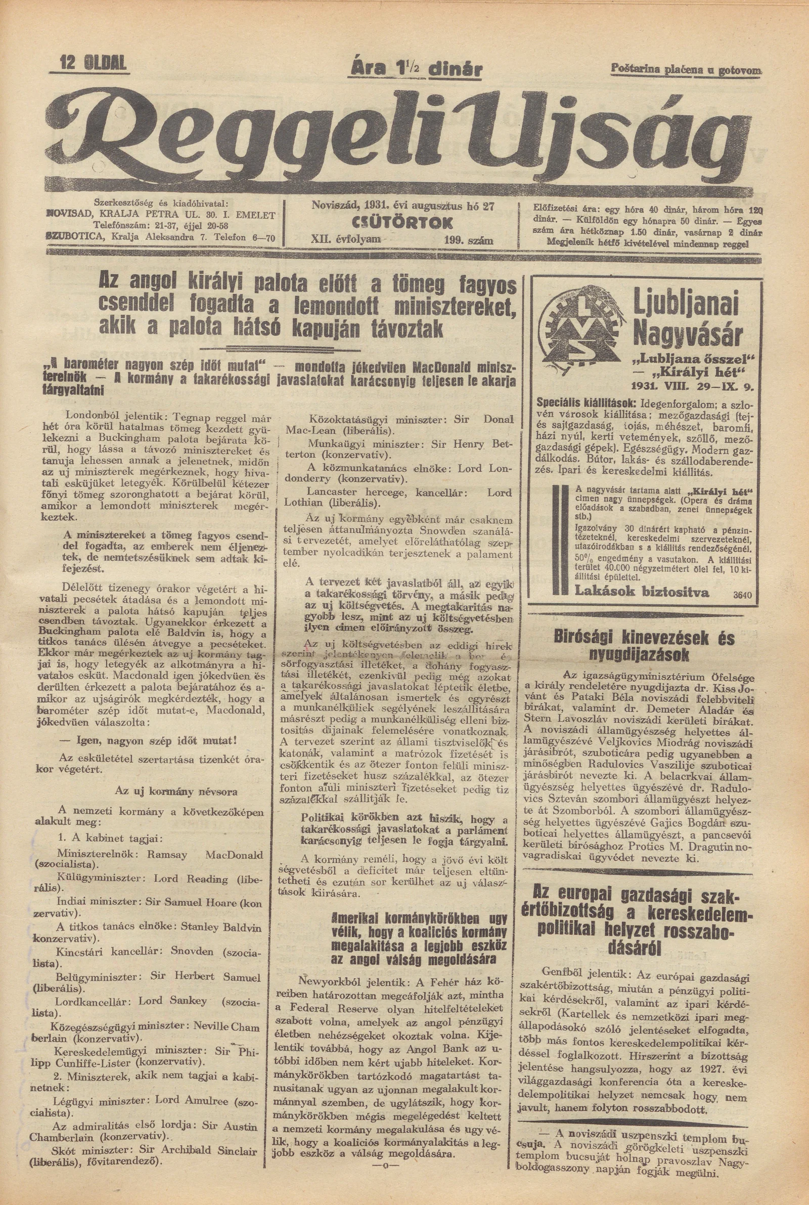 Reggeli Újság, 12. évf. 1931. augusztus 27. 199. sz.