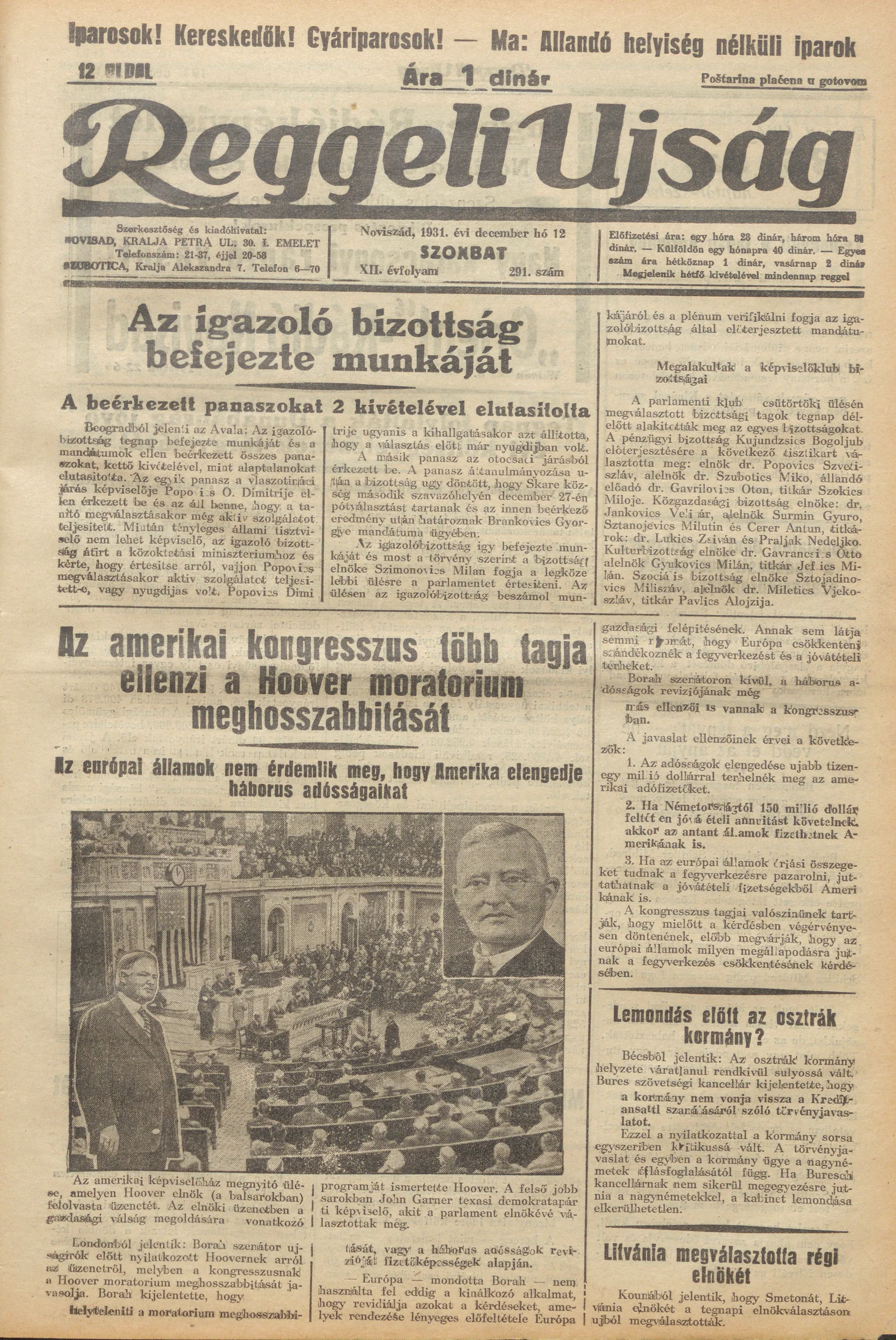 Reggeli Újság, 12. évf. 1931. december 12. 291. sz.