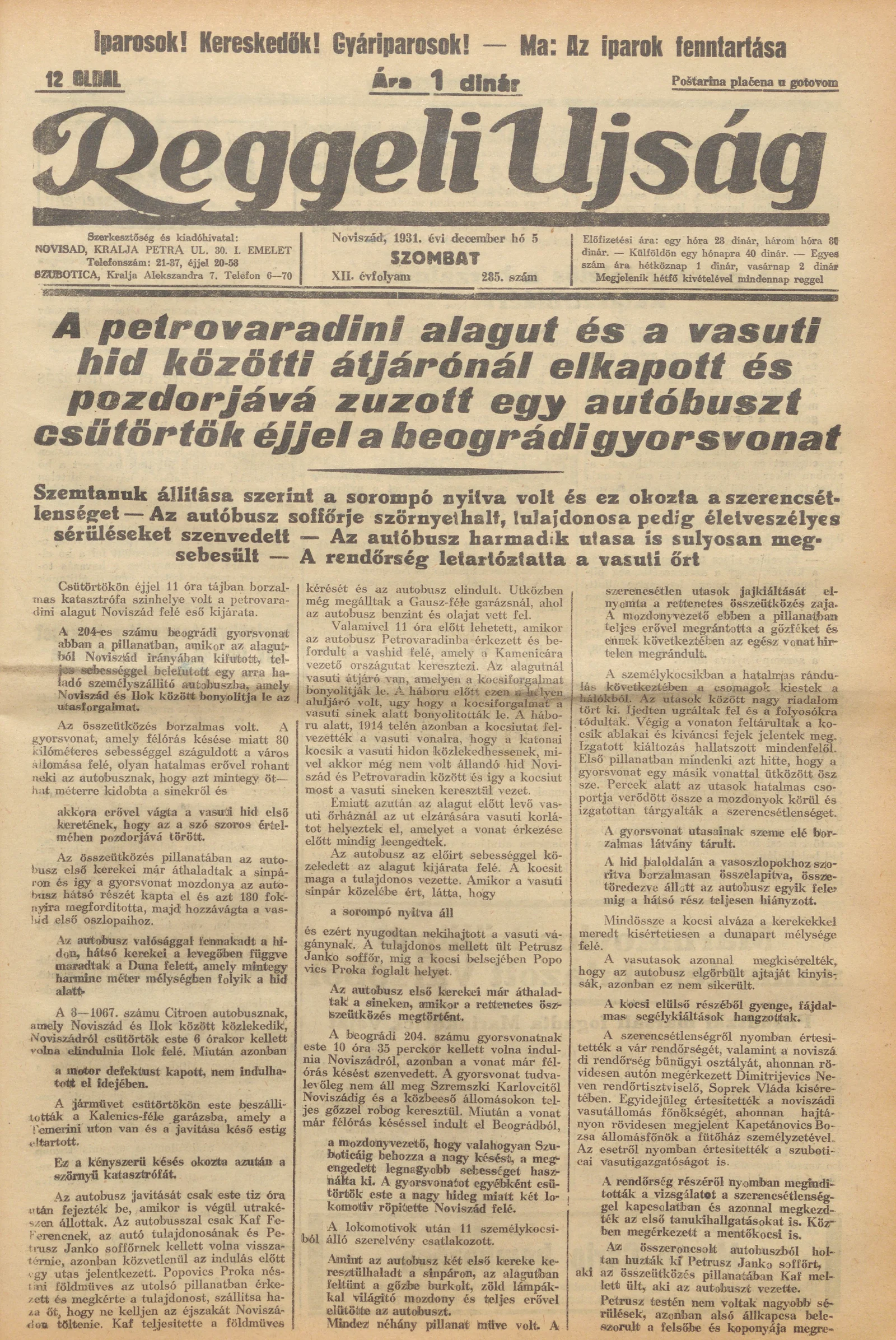 Reggeli Újság, 12. évf. 1931. december 5. 285. sz.