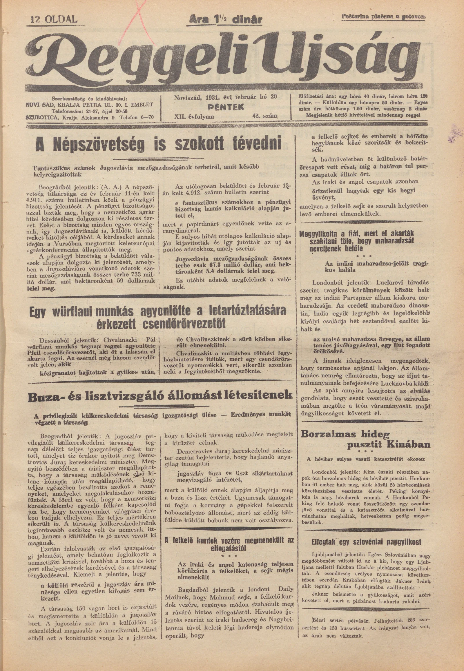 Reggeli Újság, 12. évf. 1931. február 20. 42. sz.