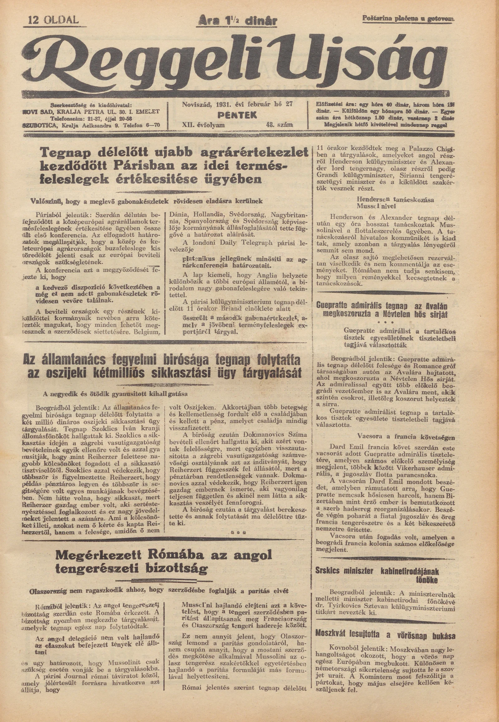 Reggeli Újság, 12. évf. 1931. február 27. 48. sz.