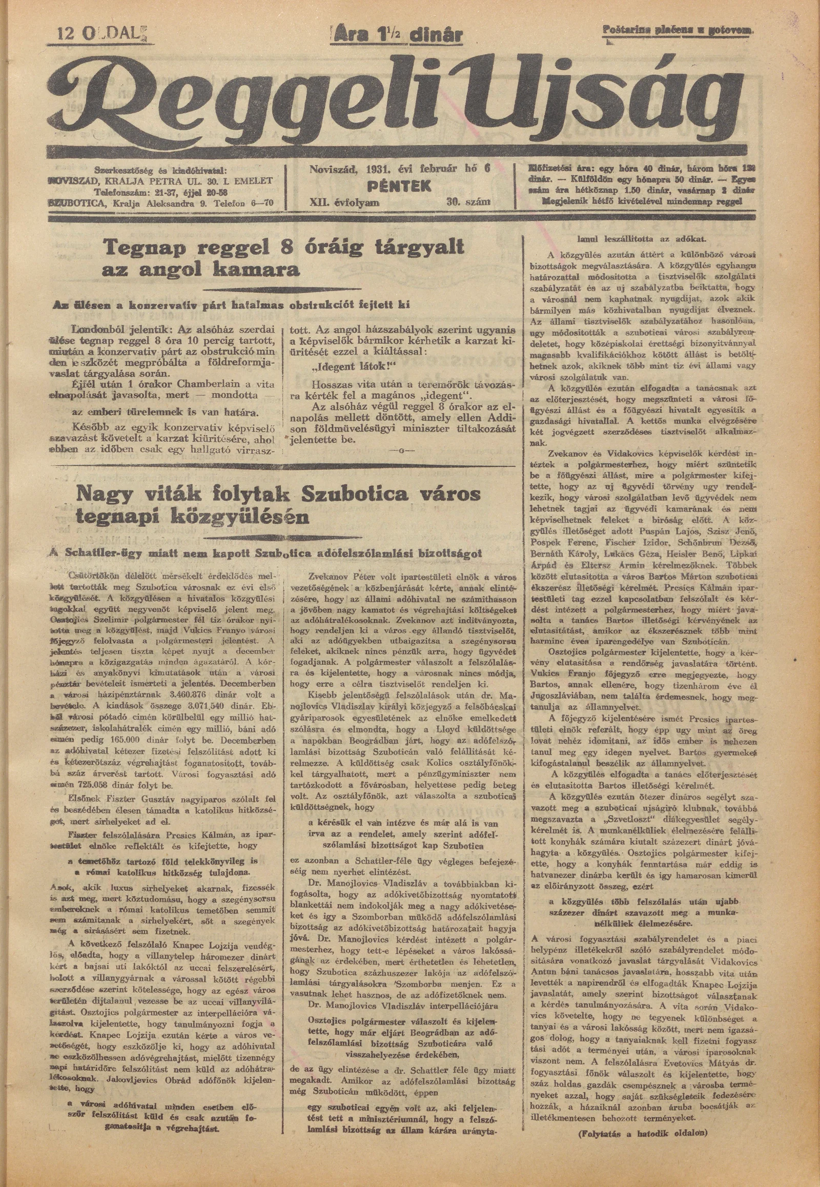 Reggeli Újság, 12. évf. 1931. február 6. 30. sz.