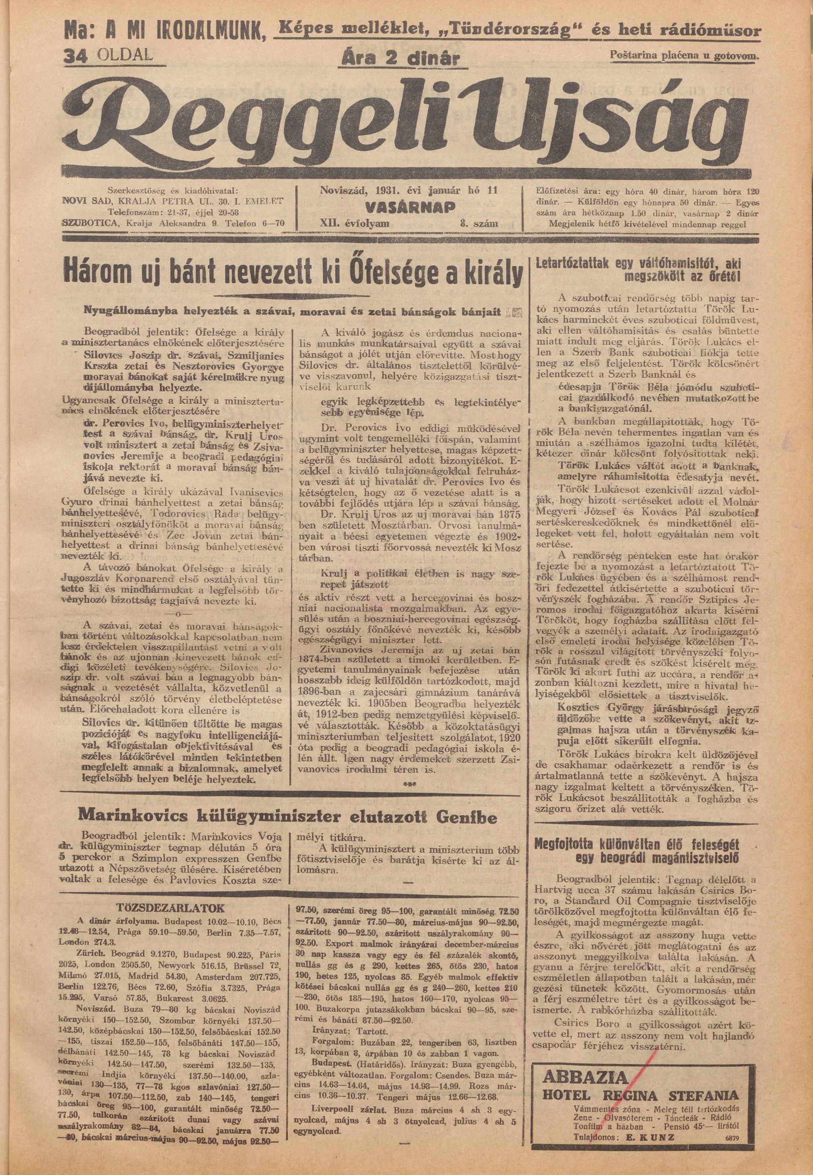 Reggeli Újság, 12. évf. 1931. január 11. 8. sz.