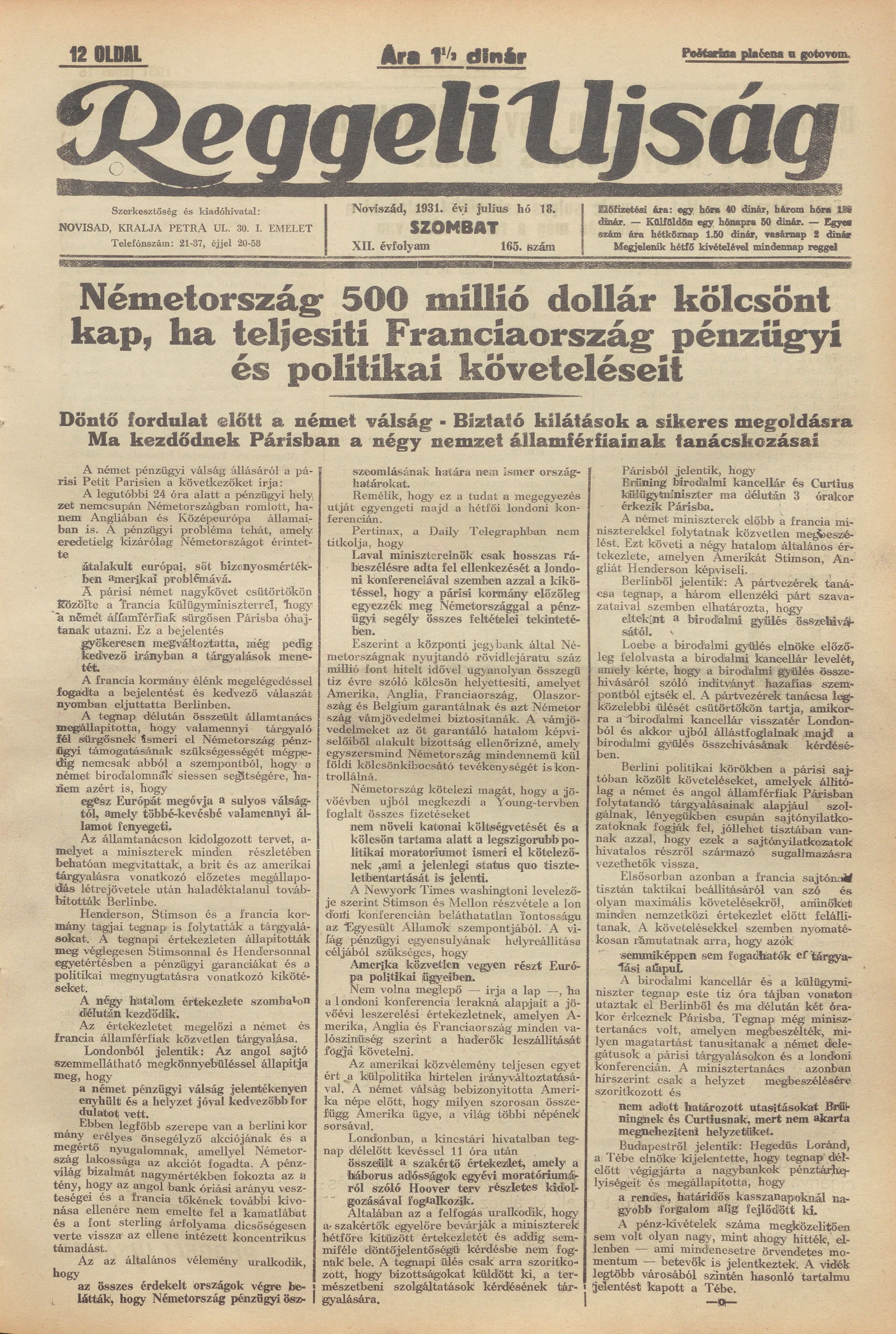 Reggeli Újság, 12. évf. 1931. július 18. 165. sz.