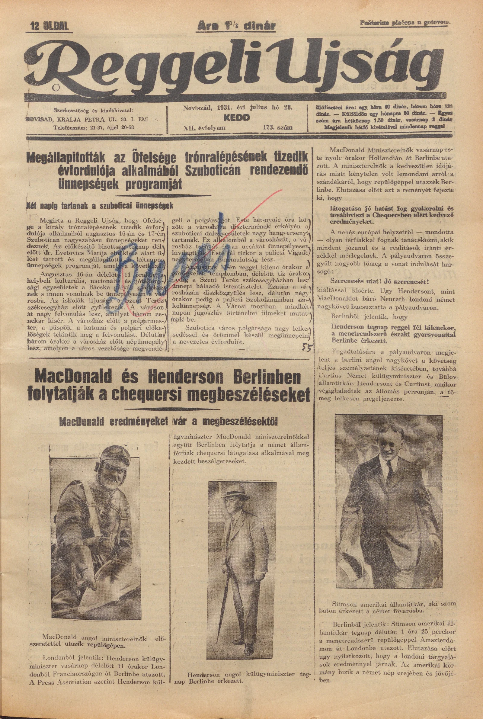 Reggeli Újság, 12. évf. 1931. július 28. 173. sz.