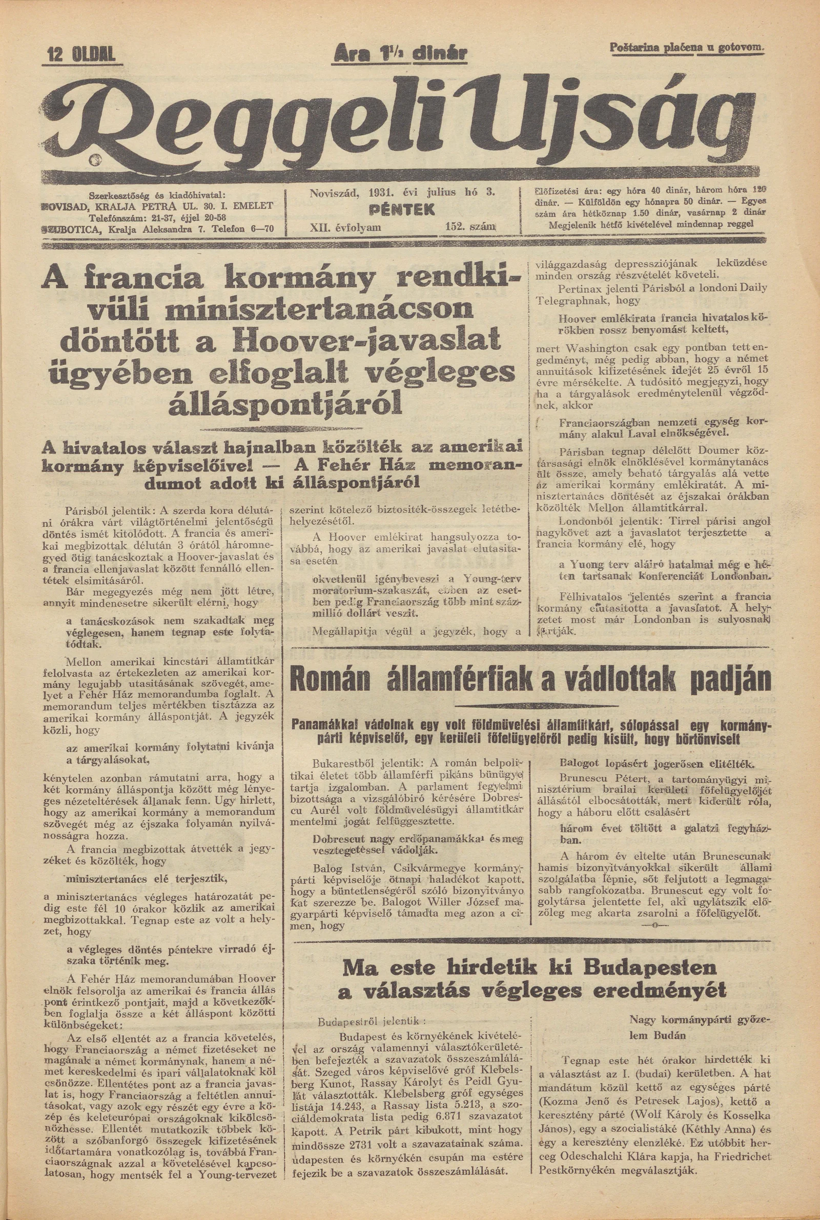 Reggeli Újság, 12. évf. 1931. július 3. 152. sz.
