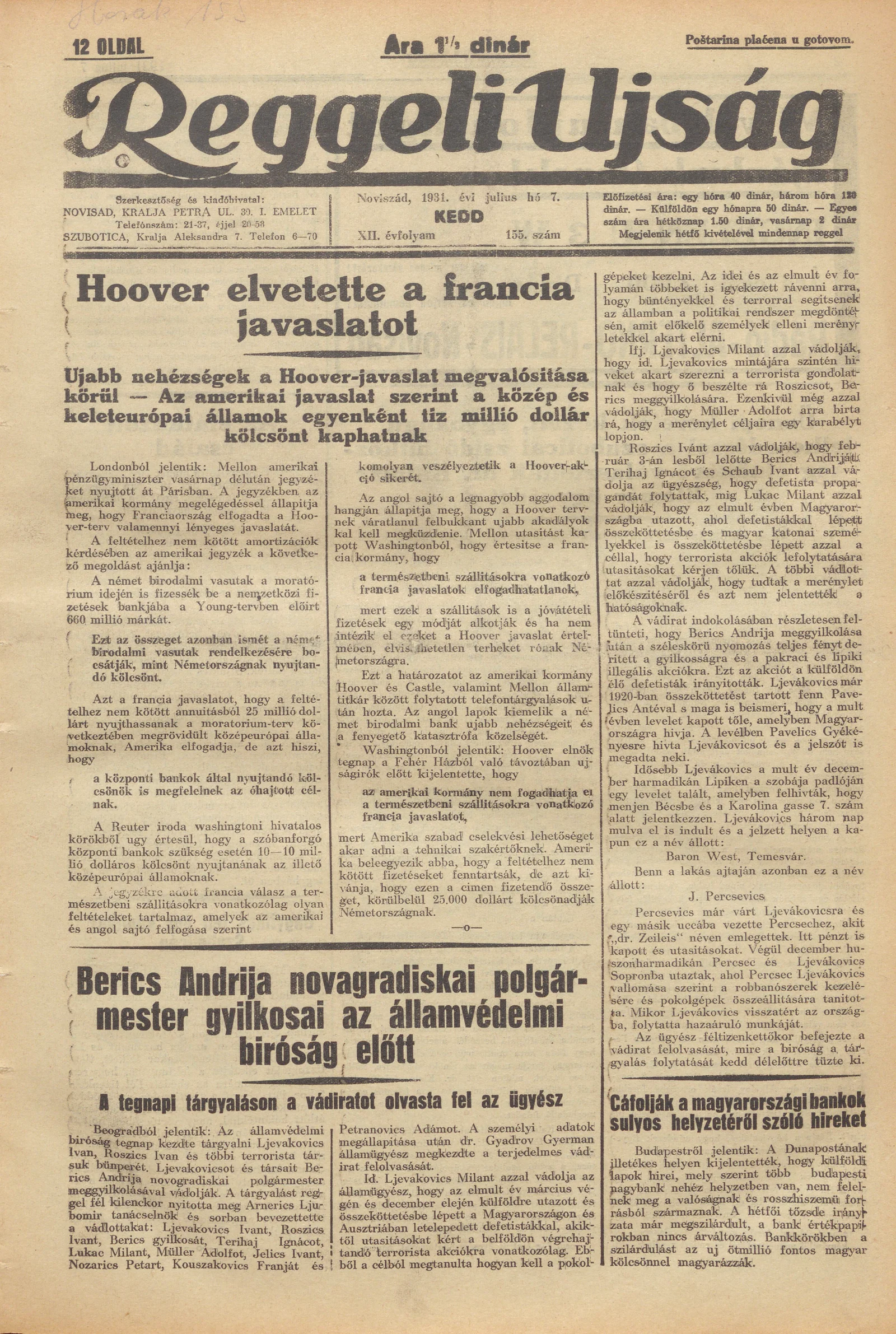 Reggeli Újság, 12. évf. 1931. július 7. 155. sz.