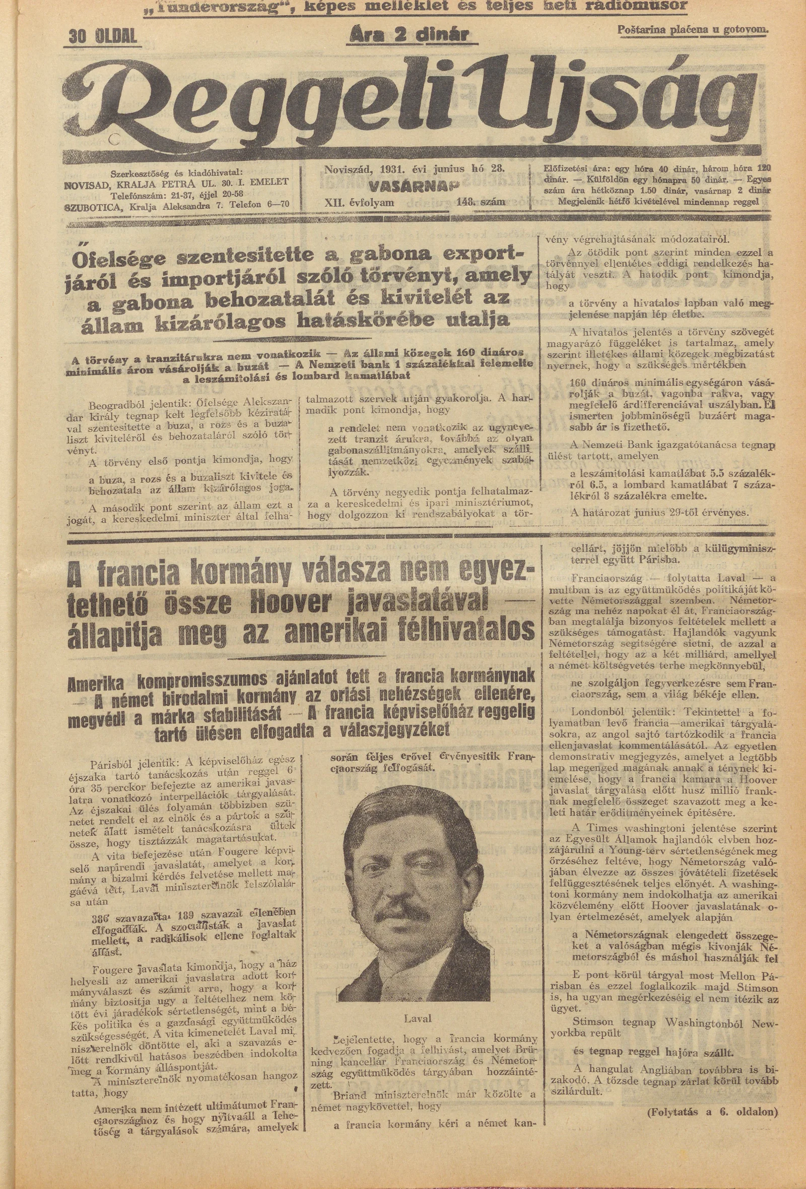 Reggeli Újság, 12. évf. 1931. június 28. 148. sz.