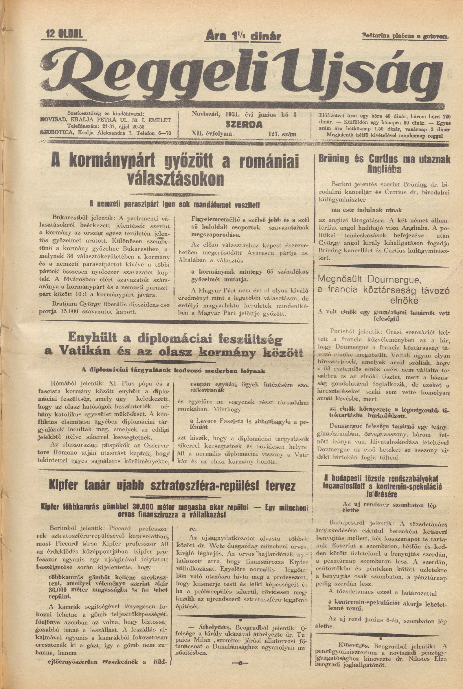 Reggeli Újság, 12. évf. 1931. június 3. 127. sz.