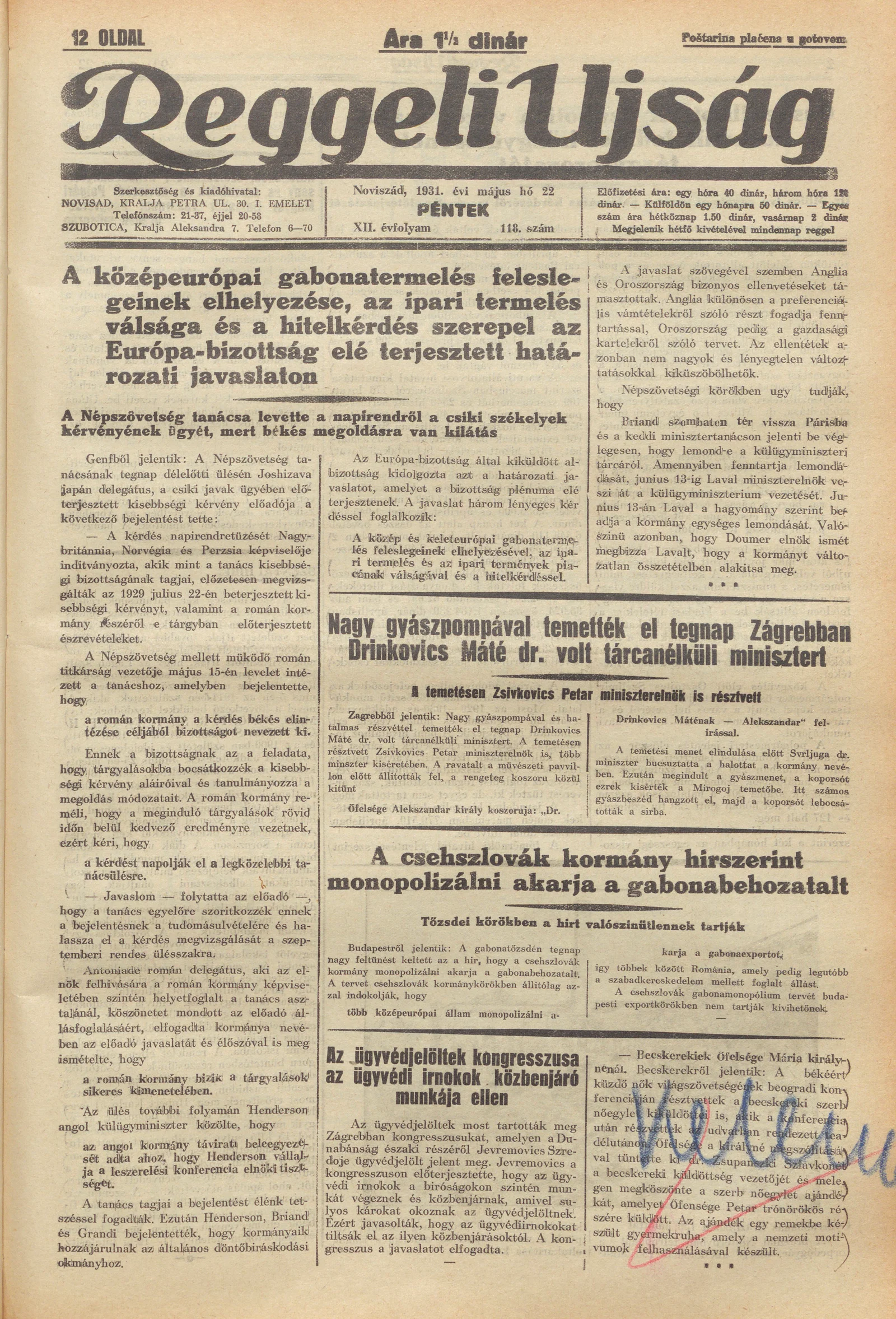 Reggeli Újság, 12. évf. 1931. május 22. 118. sz.