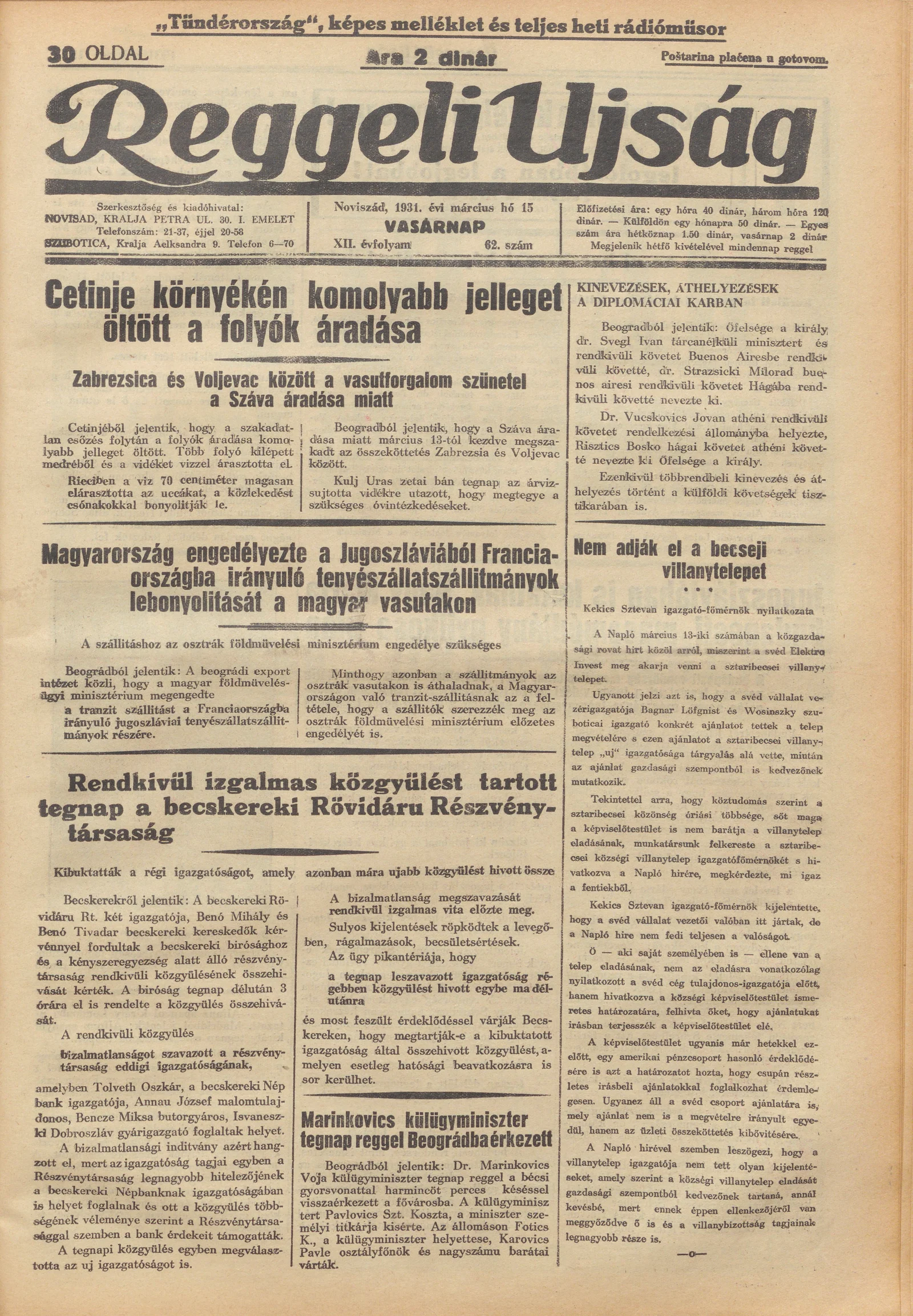 Reggeli Újság, 12. évf. 1931. március 15. 62. sz.