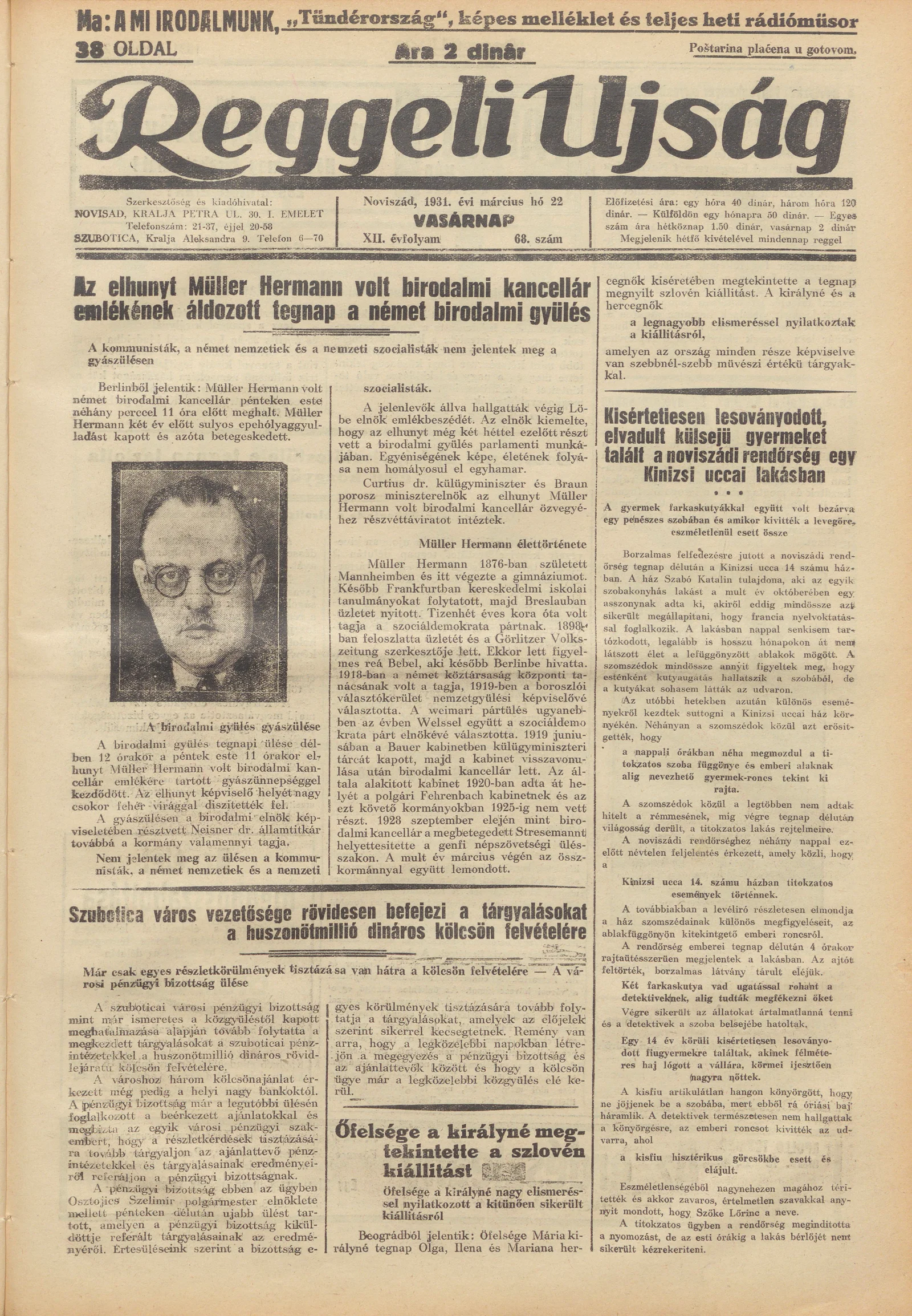 Reggeli Újság, 12. évf. 1931. március 22. 68. sz.