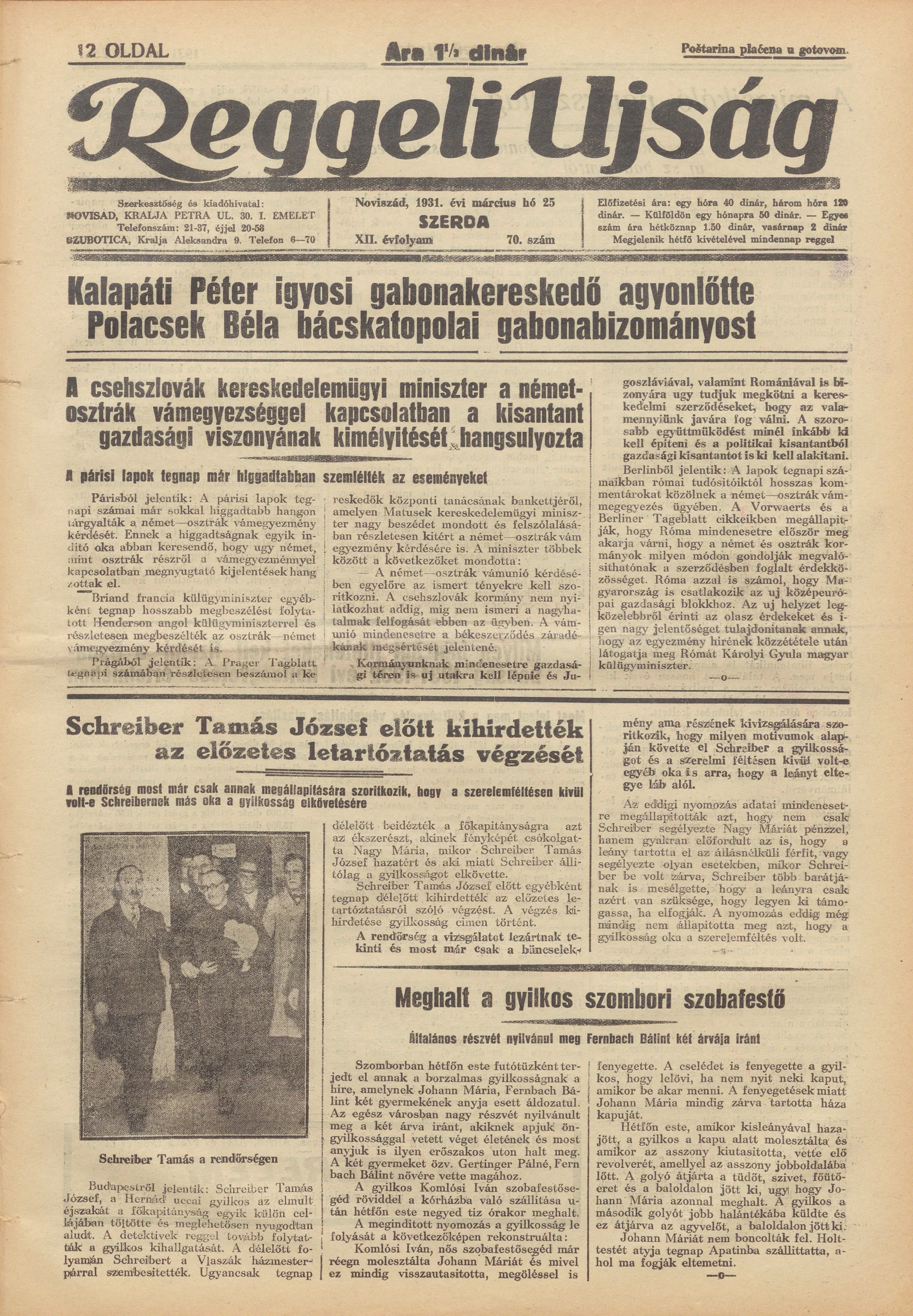 Reggeli Újság, 12. évf. 1931. március 25. 70. sz.