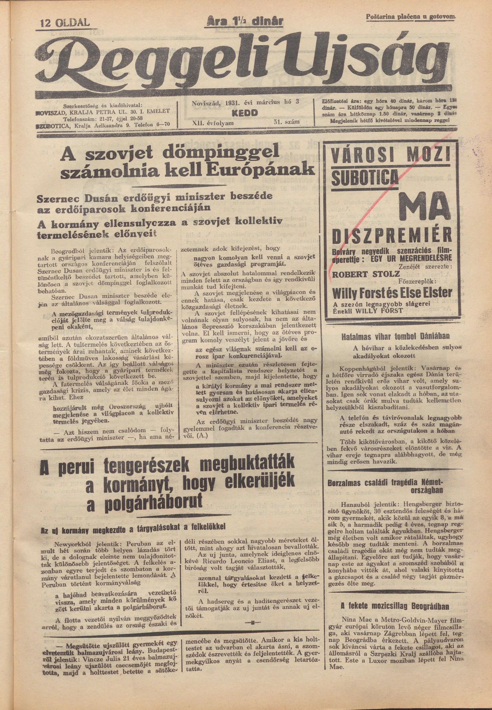 Reggeli Újság, 12. évf. 1931. március 3. 51. sz.