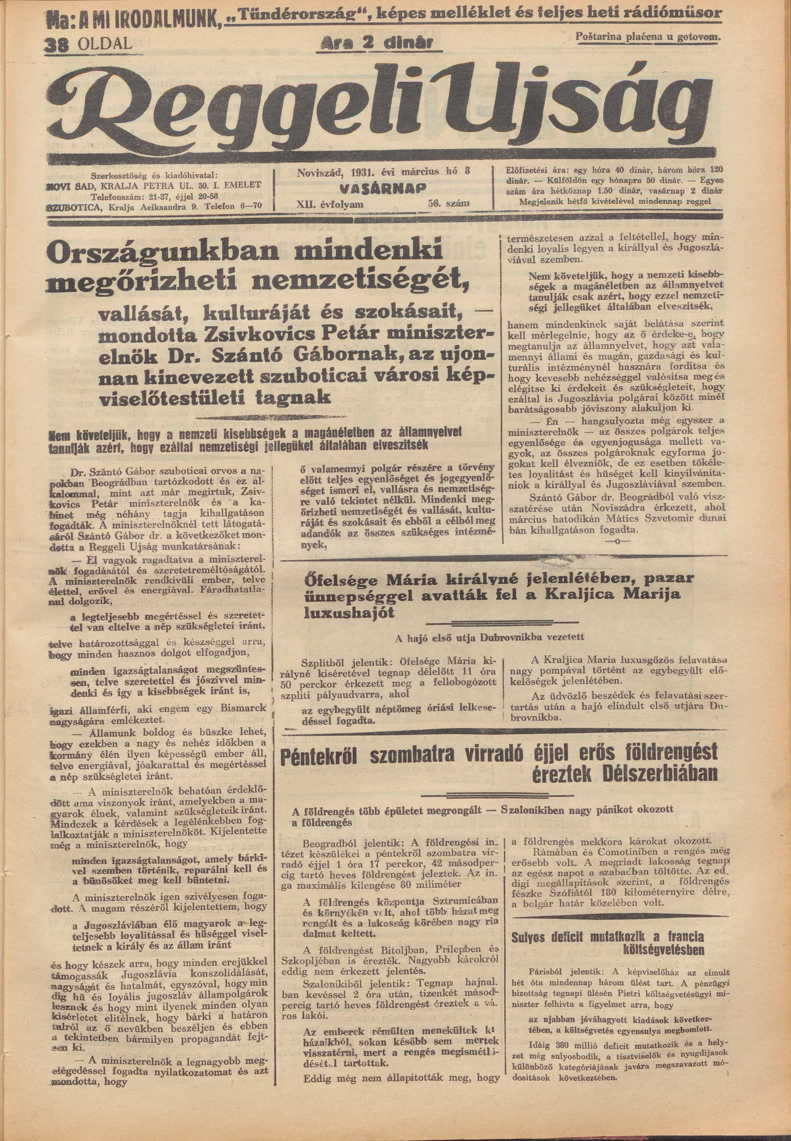 Reggeli Újság, 12. évf. 1931. március 8. 56. sz.