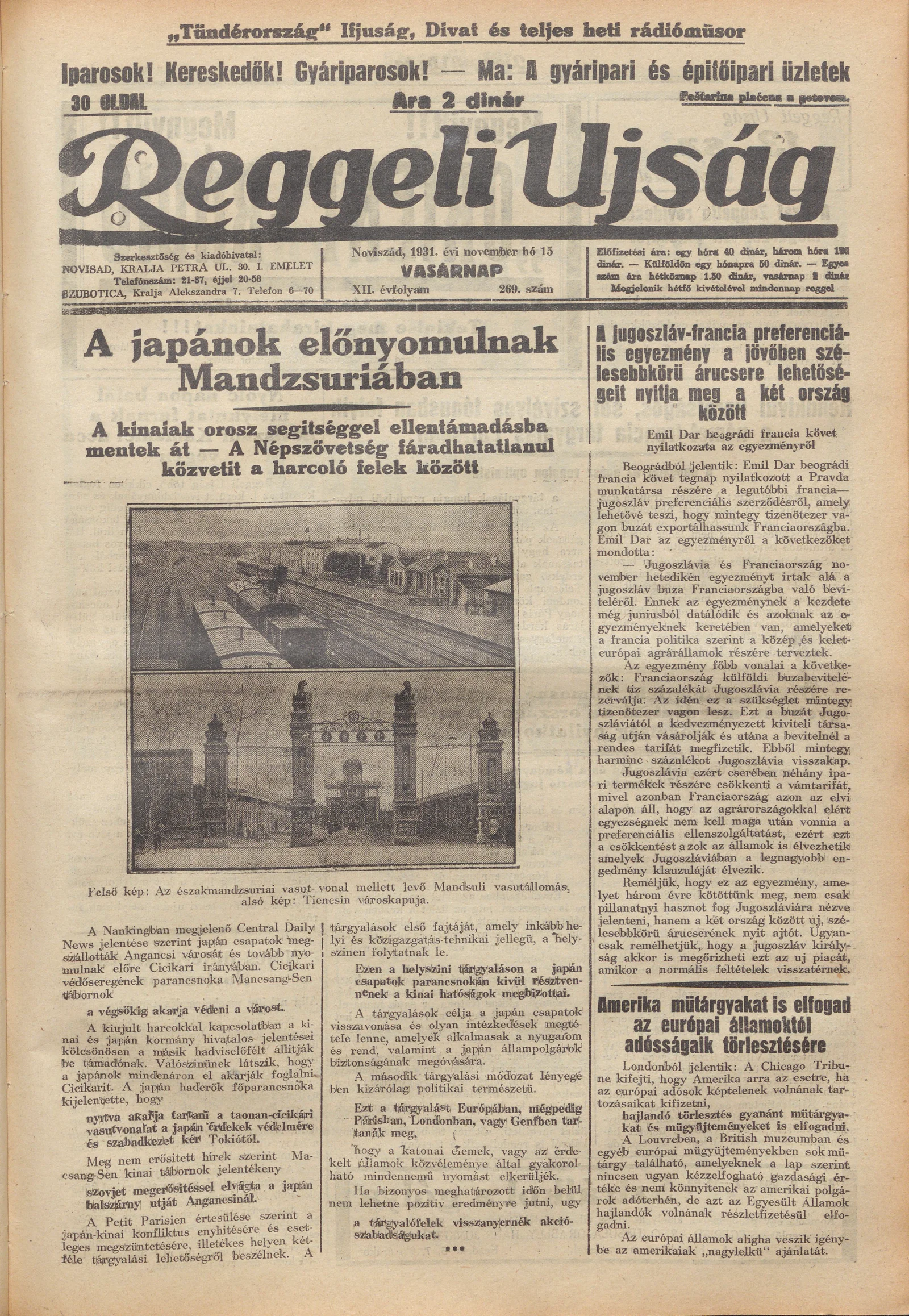 Reggeli Újság, 12. évf. 1931. november 15. 269. sz.