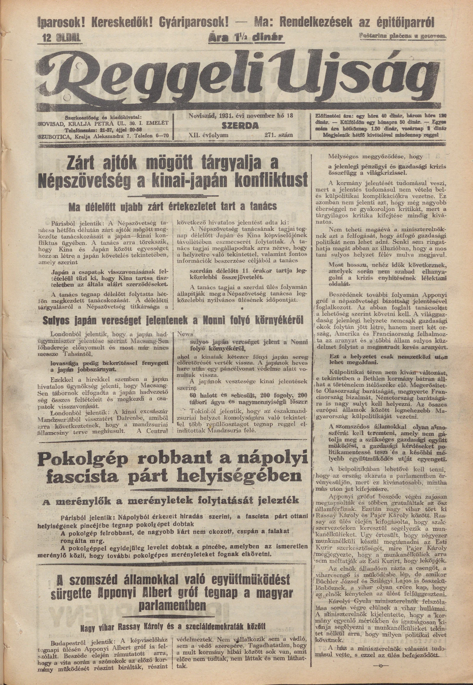 Reggeli Újság, 12. évf. 1931. november 18. 271. sz.