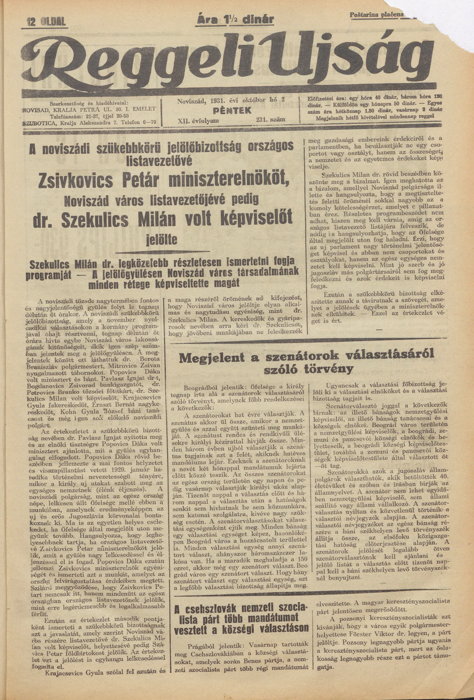 Reggeli Újság, 12. évf. 1931. október 2. 231–321. sz.