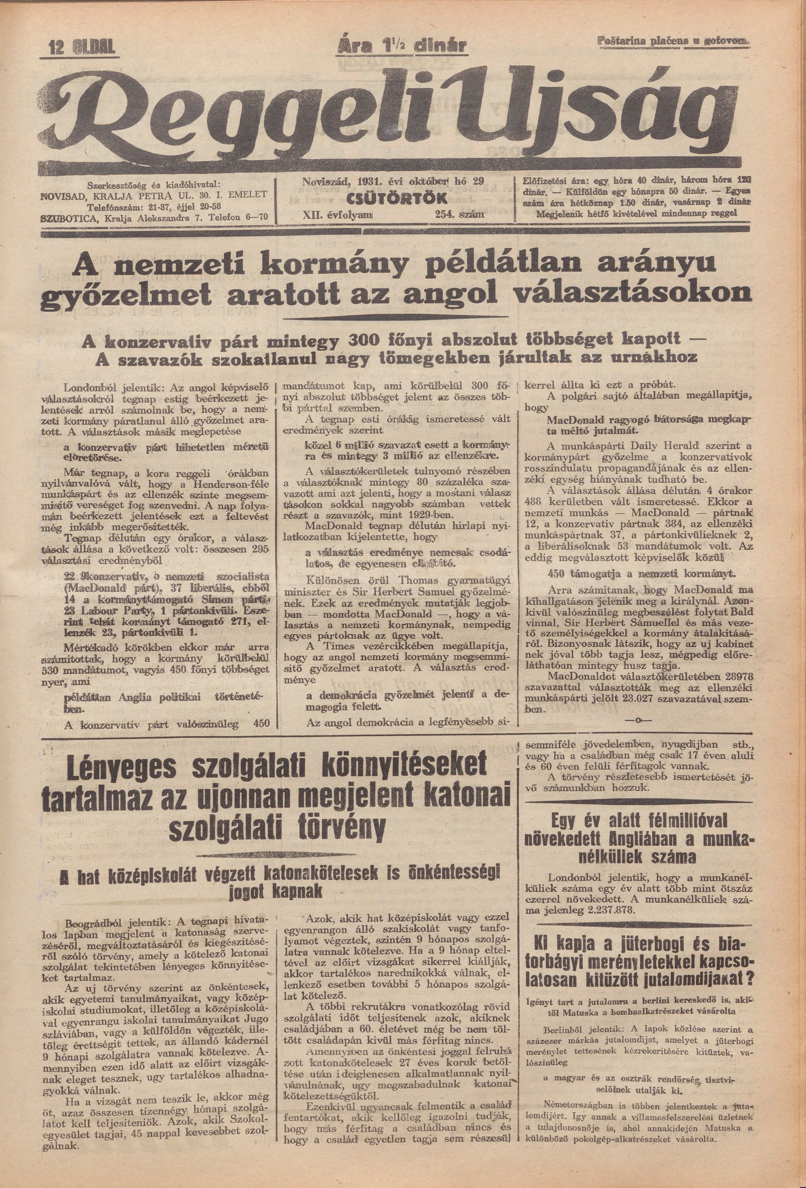 Reggeli Újság, 12. évf. 1931. október 29. 254. sz.