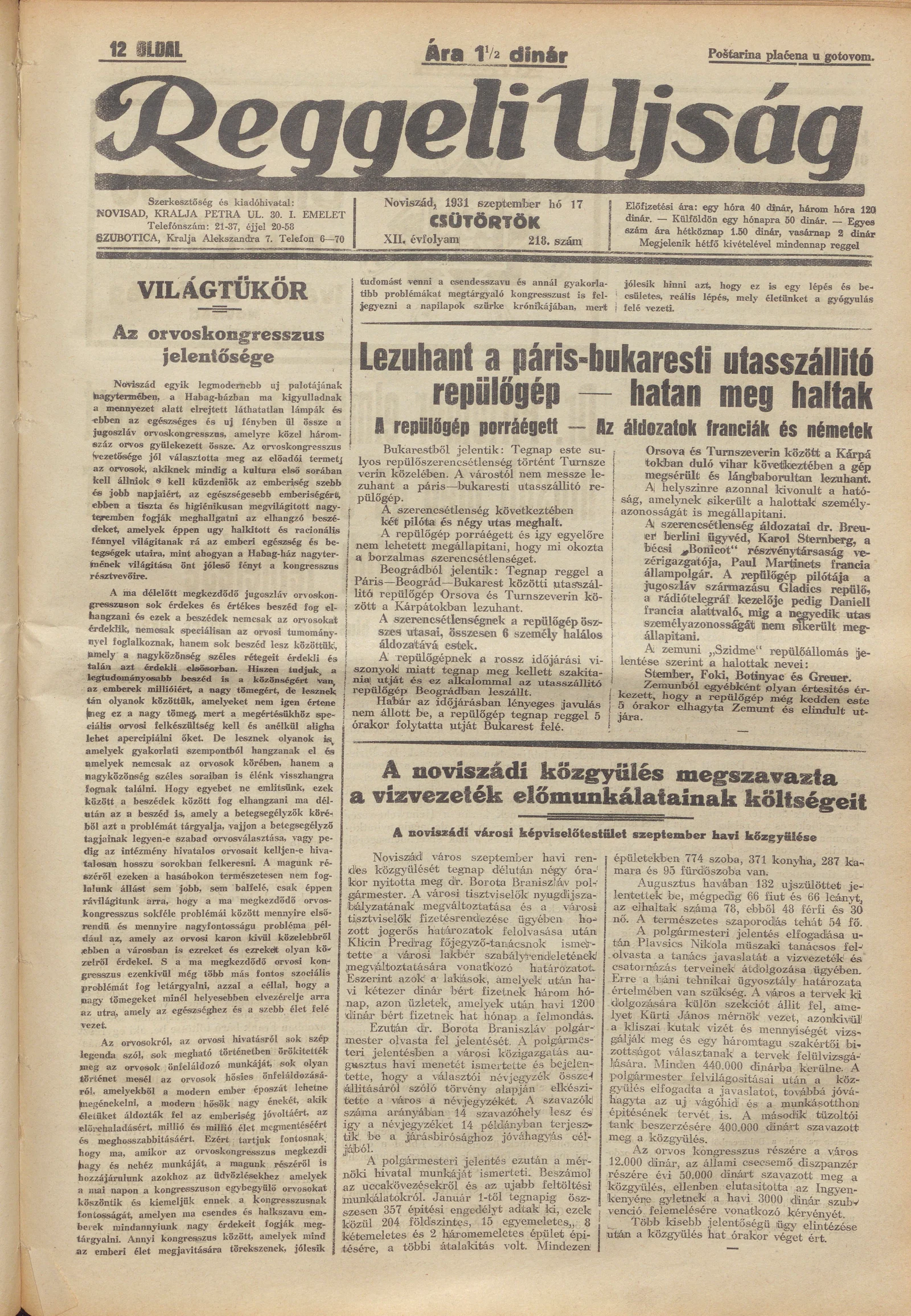 Reggeli Újság, 12. évf. 1931. szeptember 17. 218. sz.