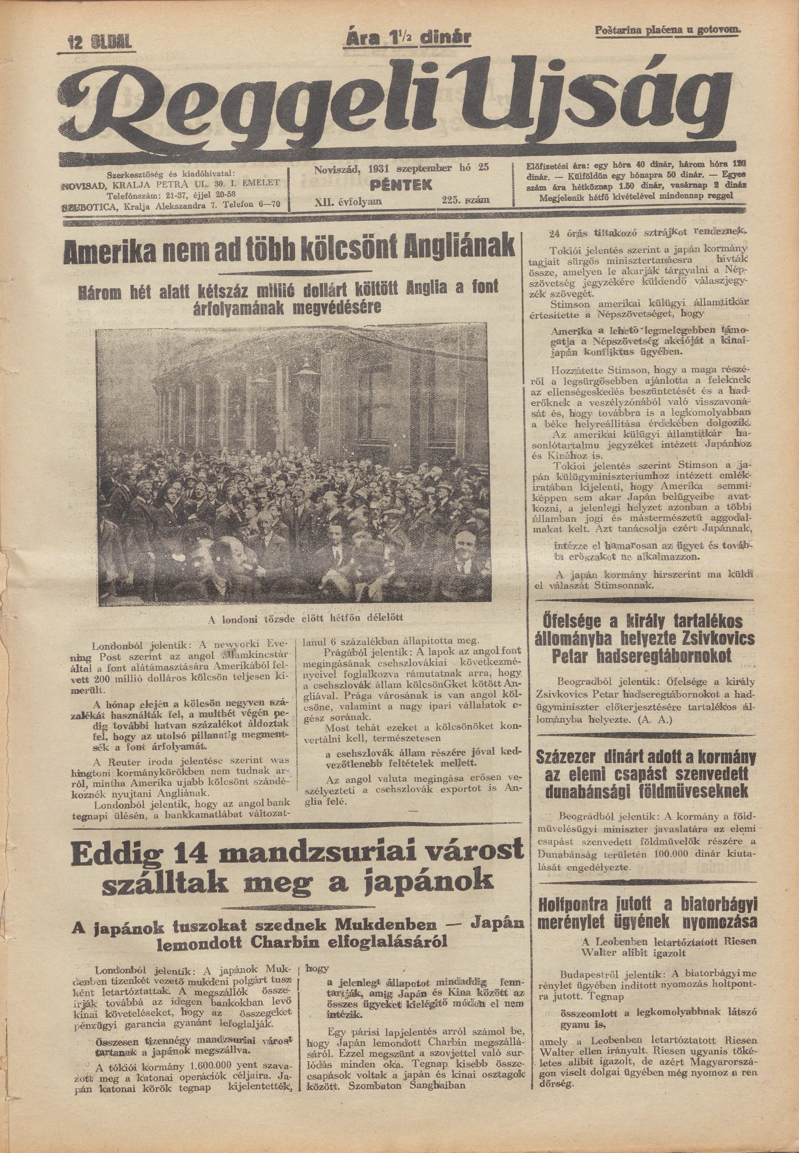 Reggeli Újság, 12. évf. 1931. szeptember 25. 225. sz.