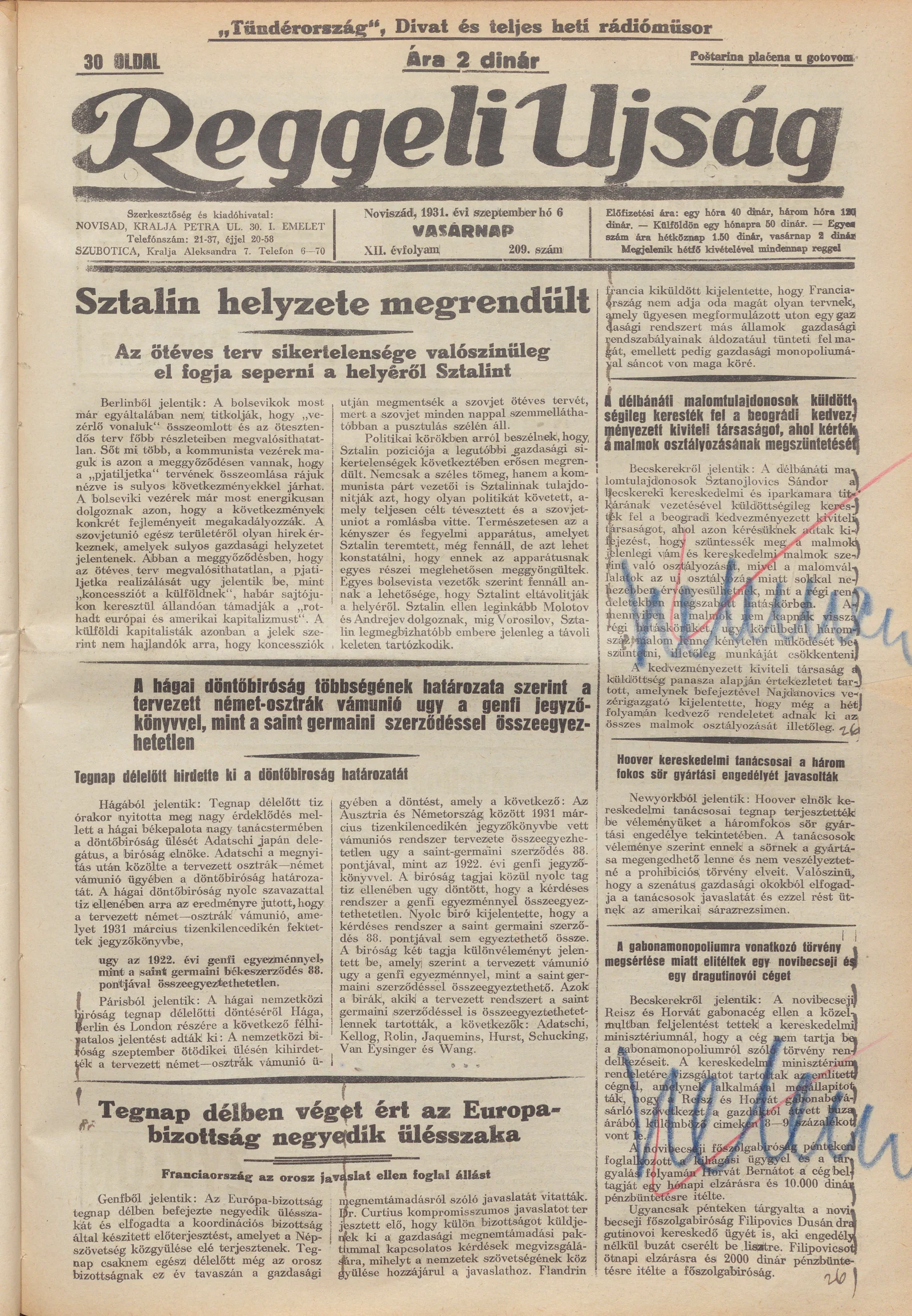 Reggeli Újság, 12. évf. 1931. szeptember 6. 209. sz.