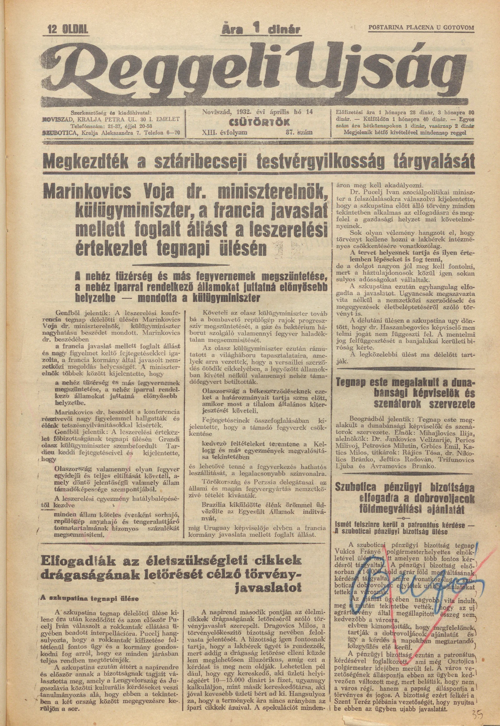 Reggeli Újság, 13. évf. 1932. április 14. 87. sz.