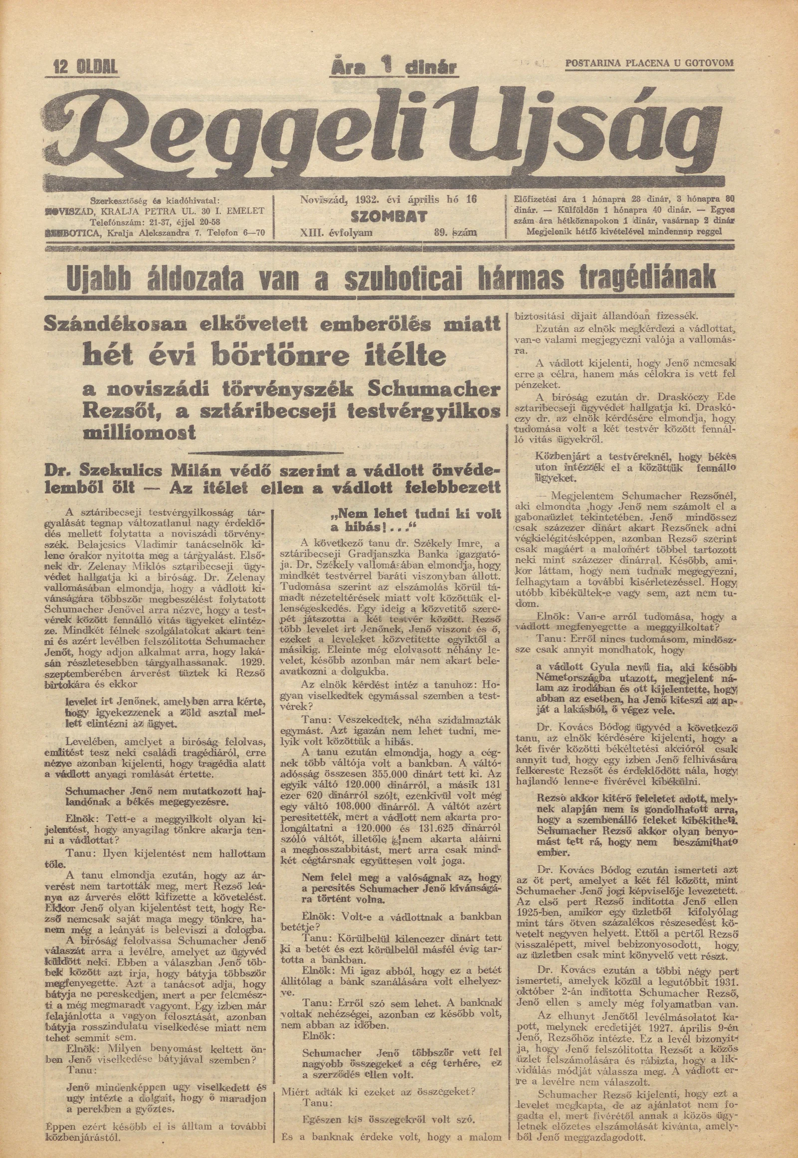 Reggeli Újság, 13. évf. 1932. április 16. 89. sz.