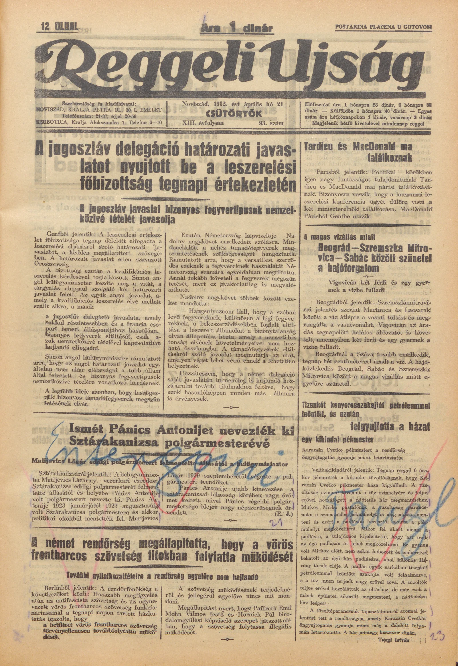 Reggeli Újság, 13. évf. 1932. április 21. 93. sz.