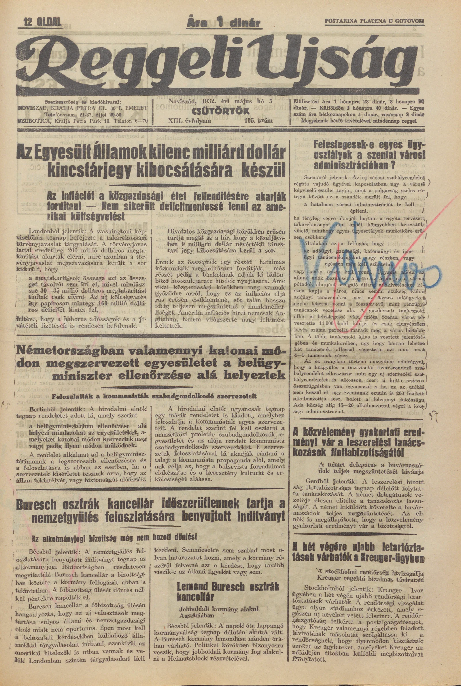 Reggeli Újság, 13. évf. 1932. április 5. 105. sz.