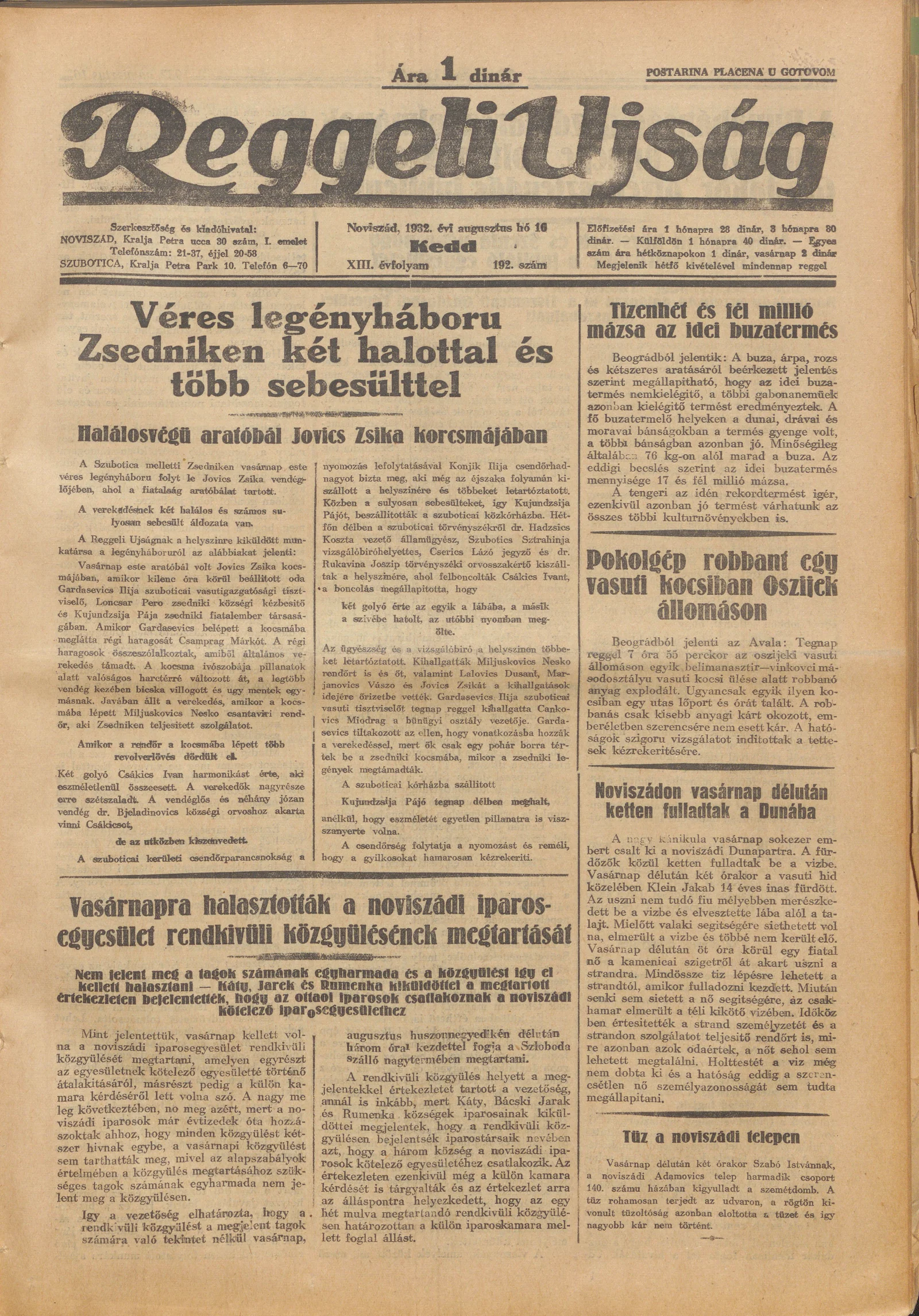 Reggeli Újság, 13. évf. 1932. augusztus 16. 192. sz.