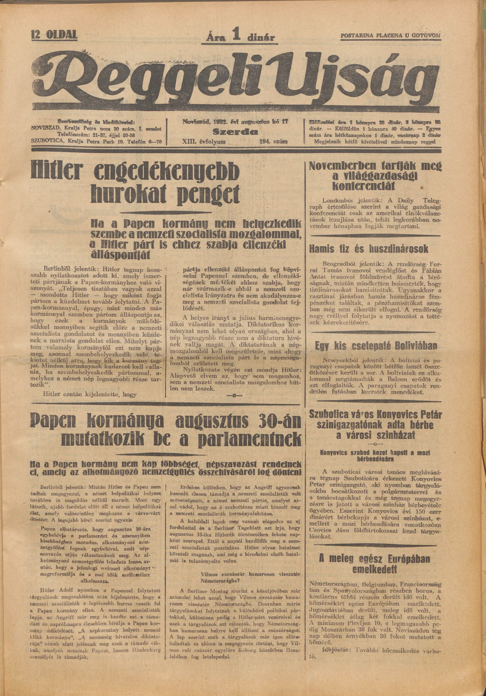 Reggeli Újság, 13. évf. 1932. augusztus 17. 194. sz.