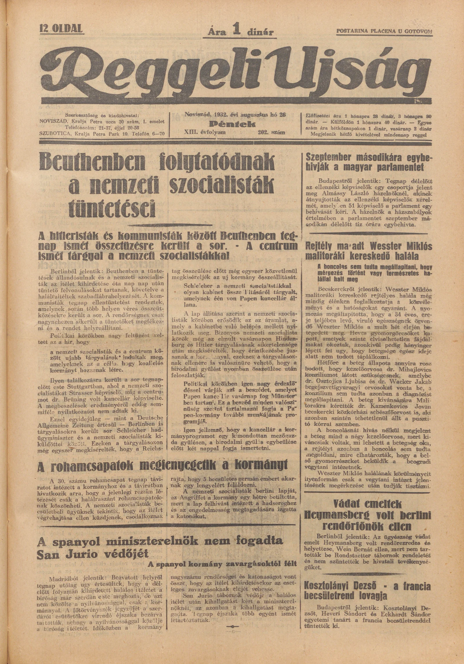 Reggeli Újság, 13. évf. 1932. augusztus 26. 202. sz.