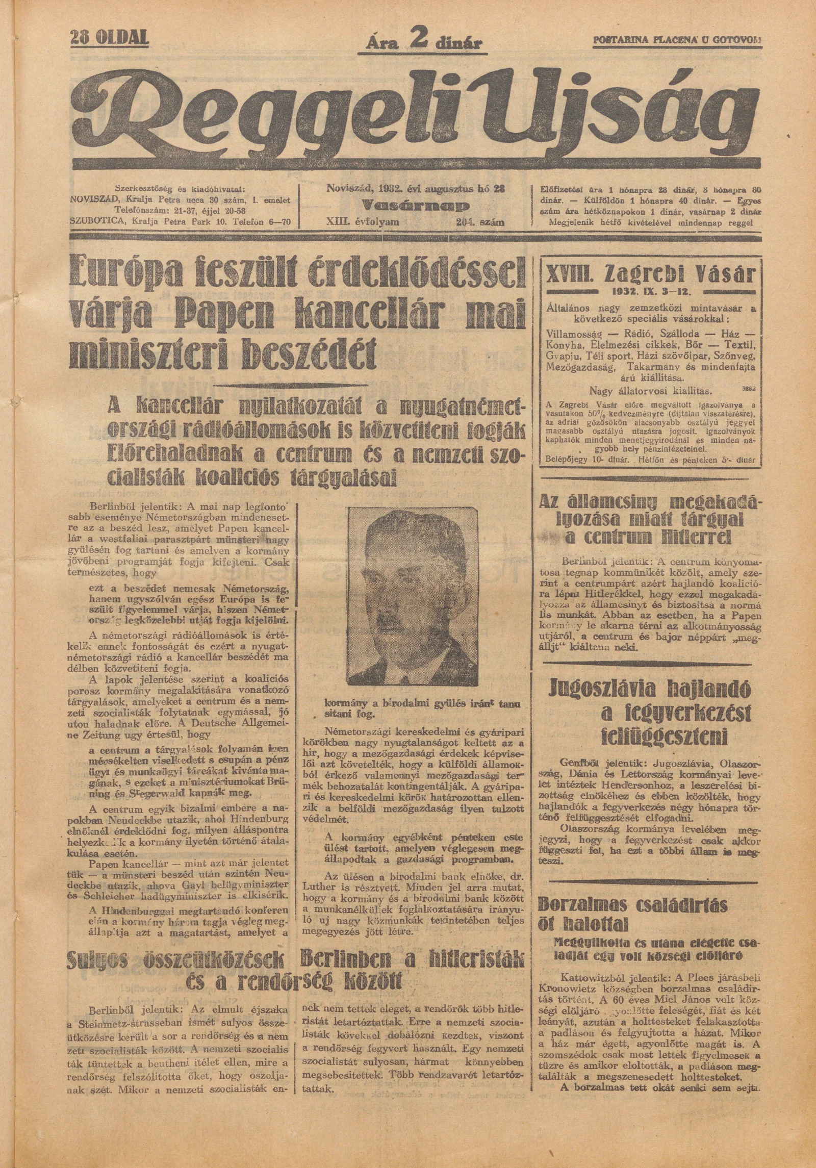 Reggeli Újság, 13. évf. 1932. augusztus 28. 204. sz.