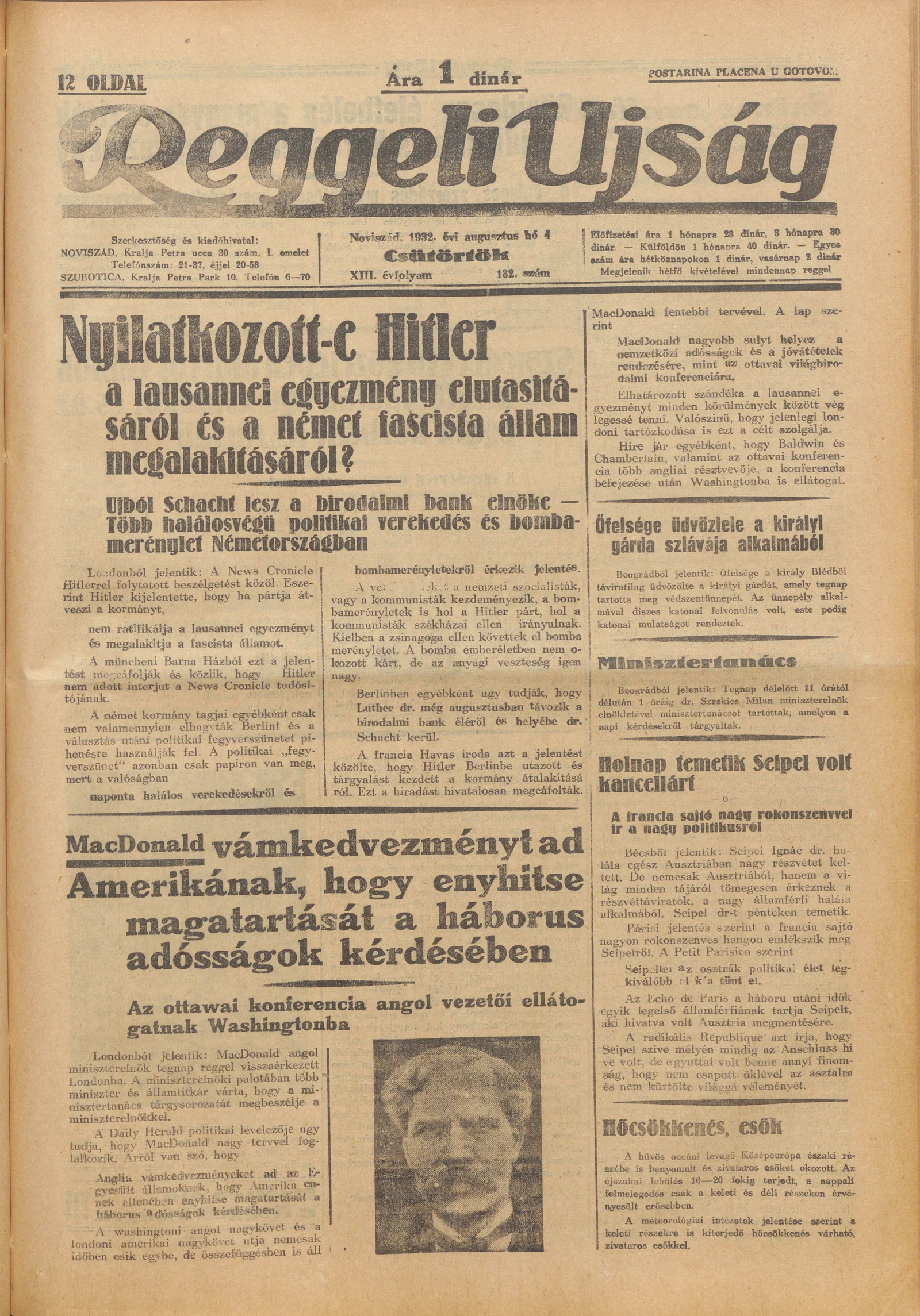 Reggeli Újság, 13. évf. 1932. augusztus 4. 182. sz.