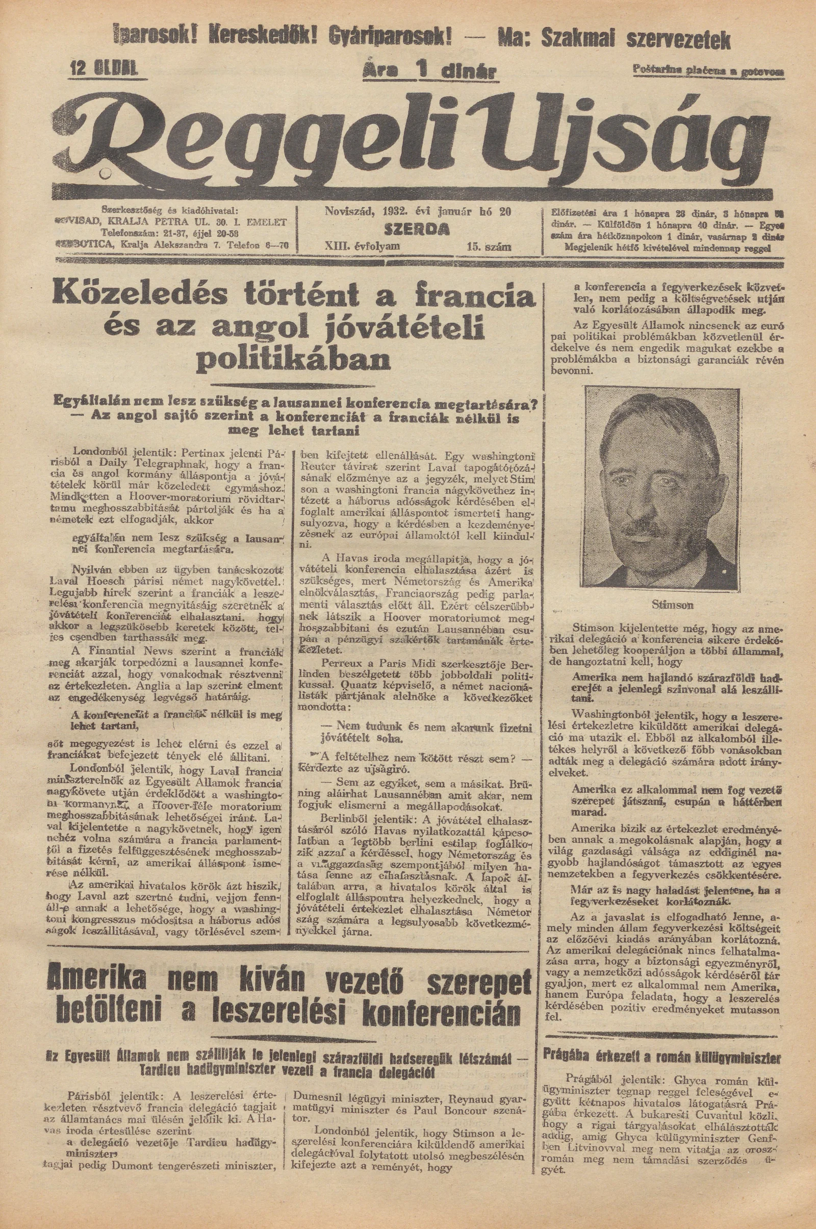Reggeli Újság, 13. évf. 1932. január 20. 15. sz.