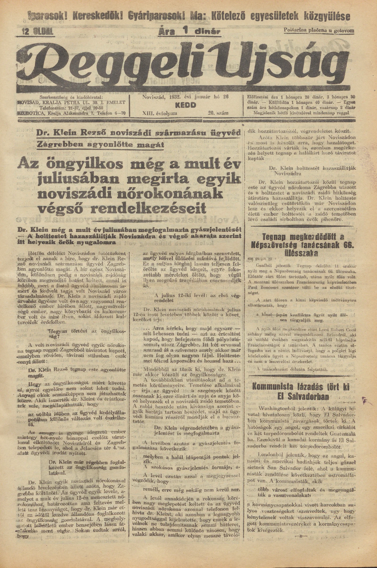 Reggeli Újság, 13. évf. 1932. január 26. 20. sz.