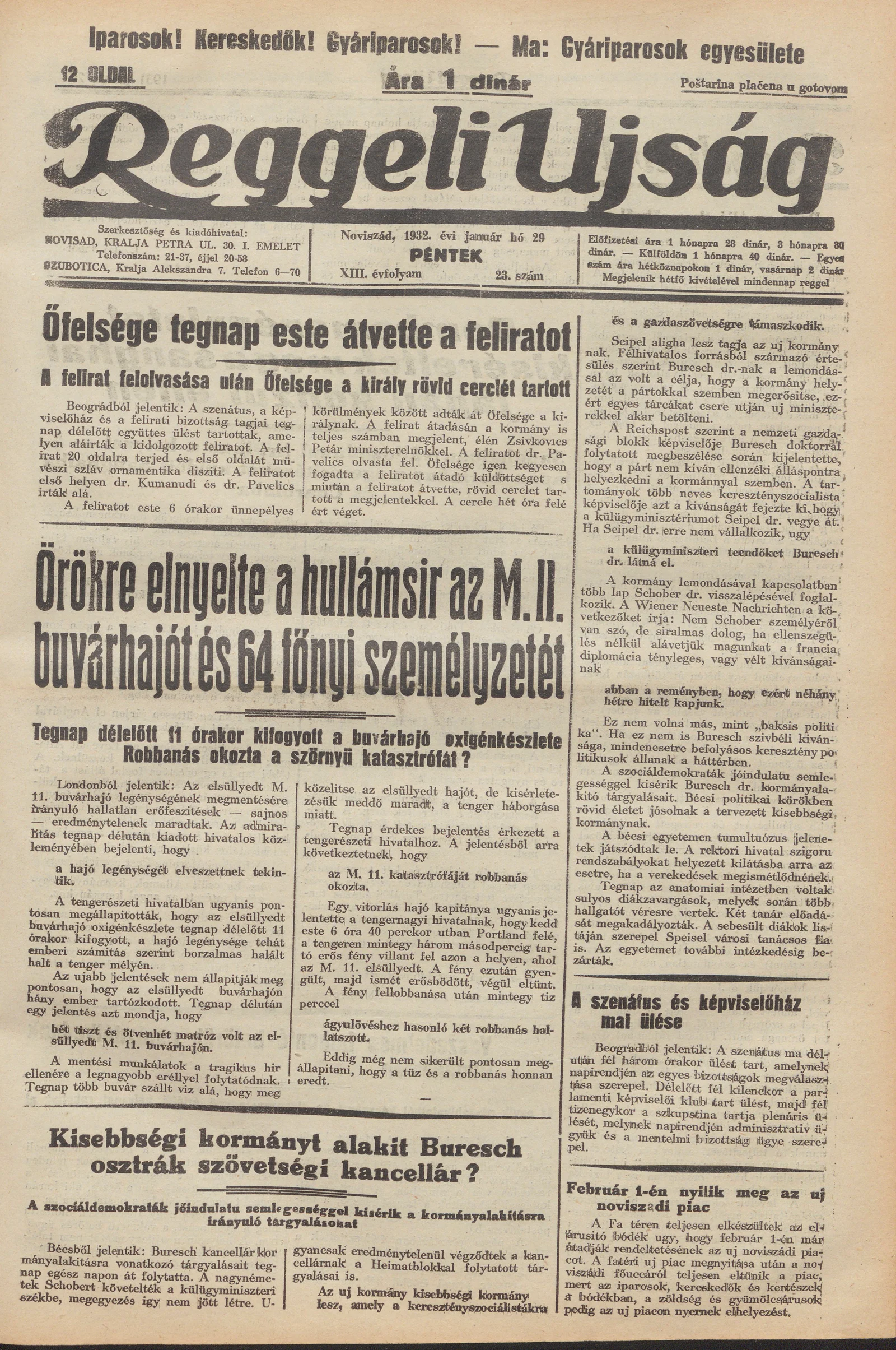 Reggeli Újság, 13. évf. 1932. január 29. 23. sz.