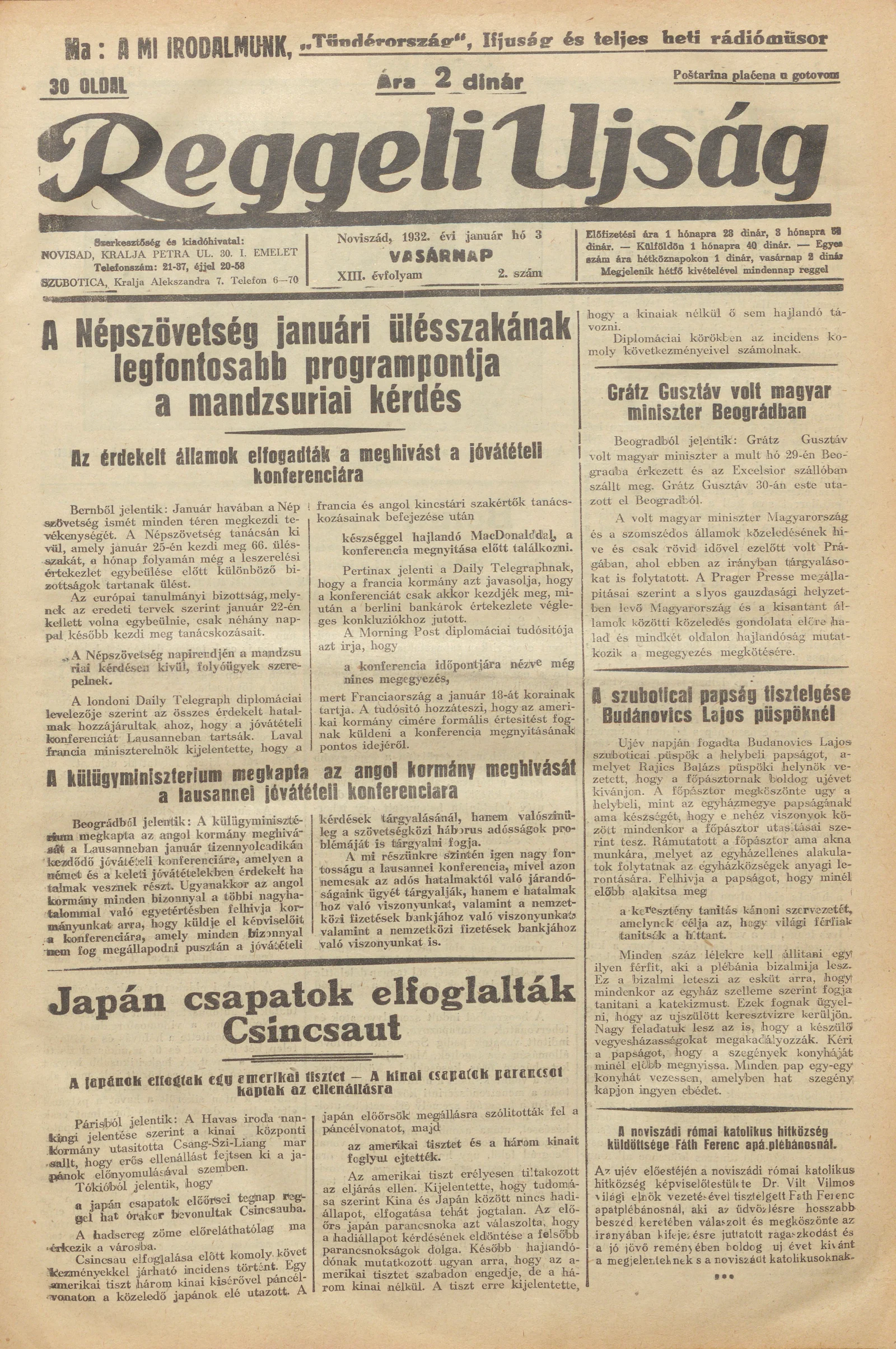 Reggeli Újság, 13. évf. 1932. január 3. 2. sz.