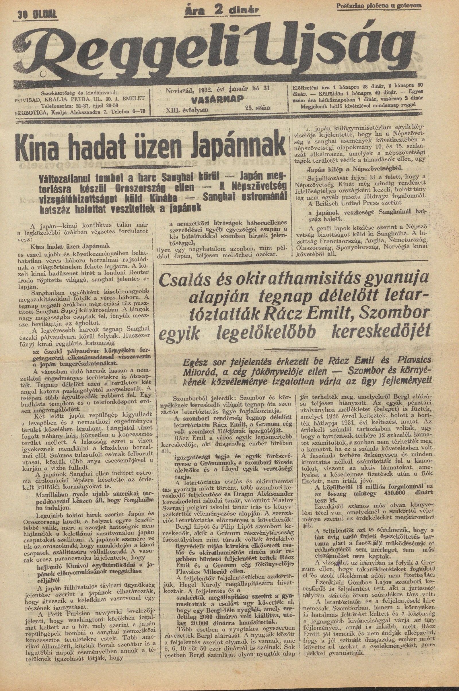 Reggeli Újság, 13. évf. 1932. január 31. 25. sz.