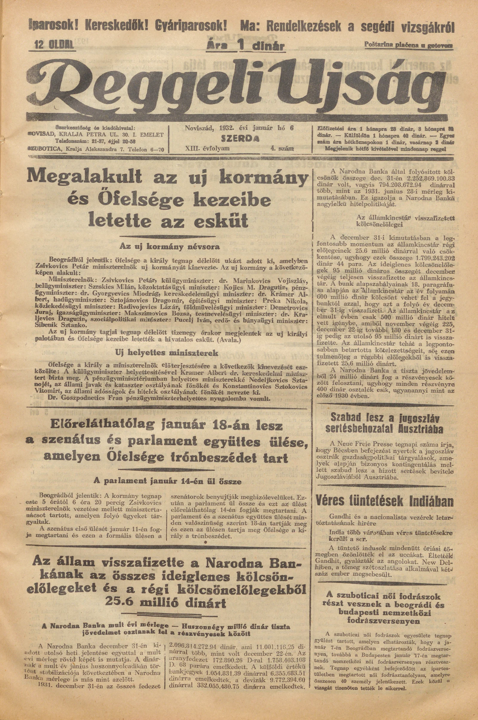 Reggeli Újság, 13. évf. 1932. január 6. 4. sz.
