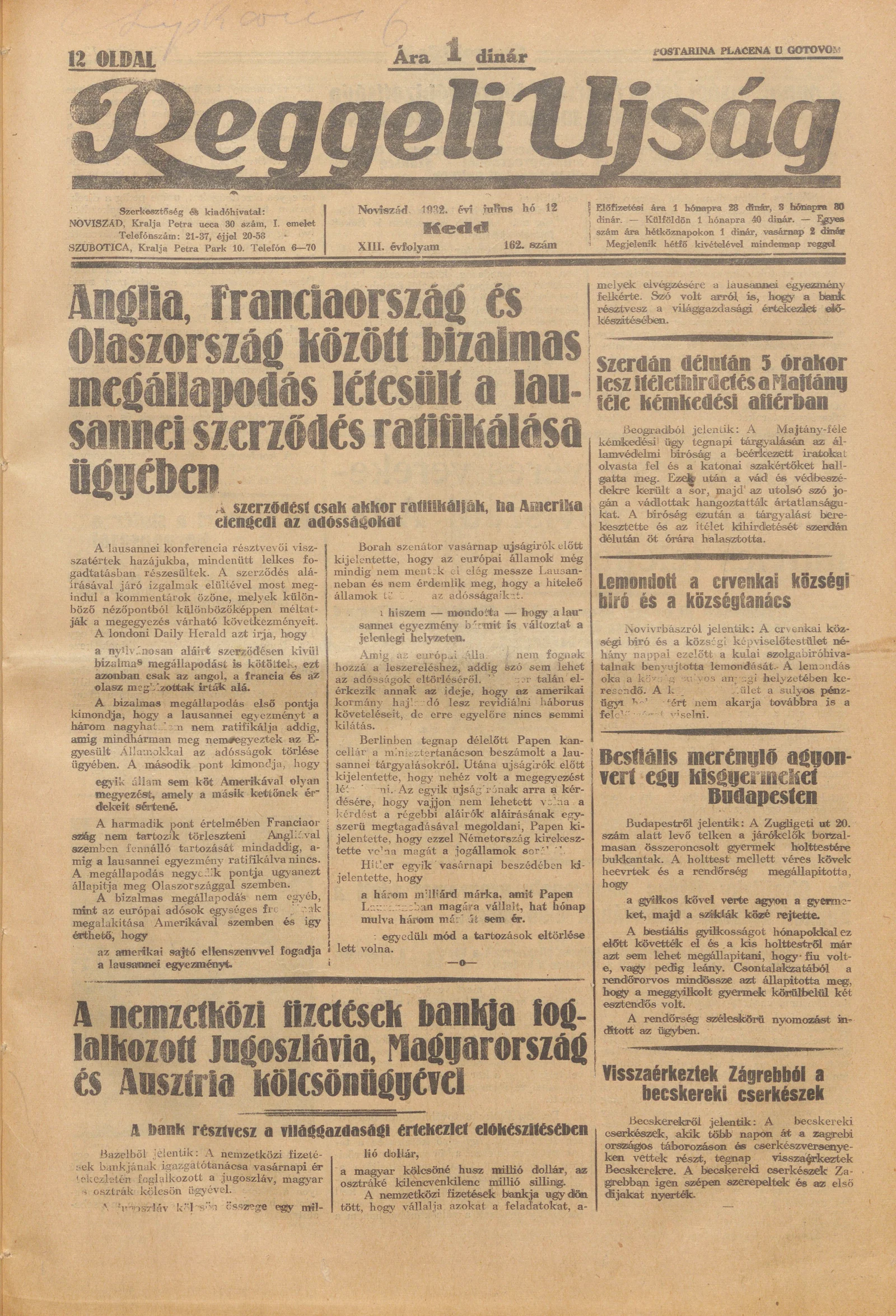 Reggeli Újság, 13. évf. 1932. július 12. 162. sz.