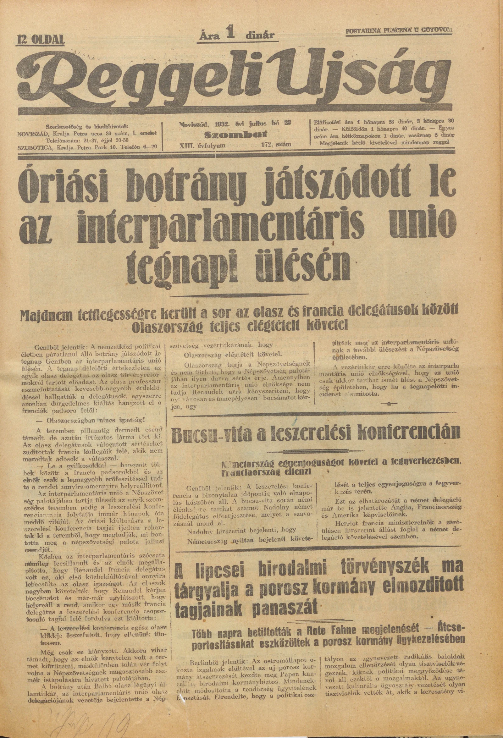 Reggeli Újság, 13. évf. 1932. július 23. 172. sz.