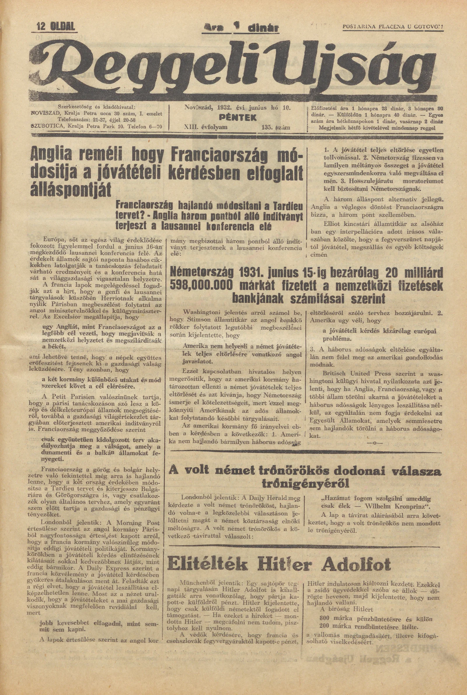 Reggeli Újság, 13. évf. 1932. június 10. 135. sz.