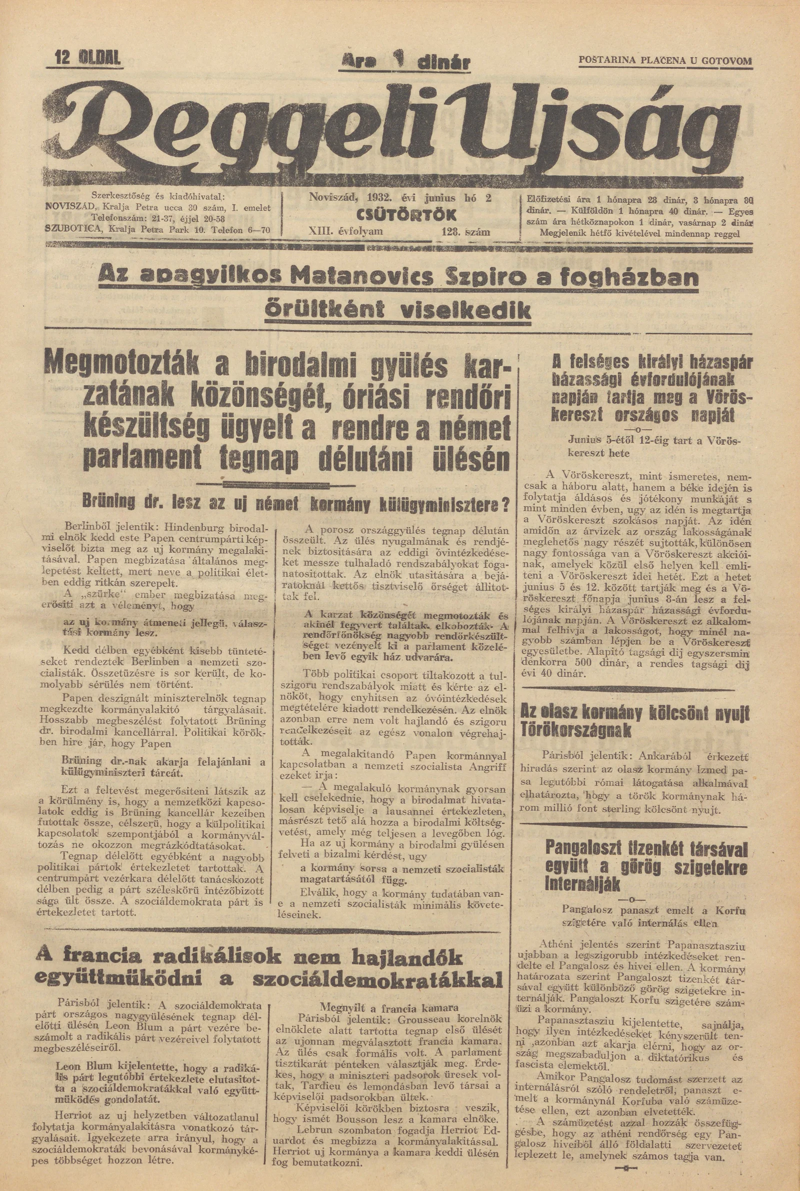 Reggeli Újság, 13. évf. 1932. június 2. 128. sz.