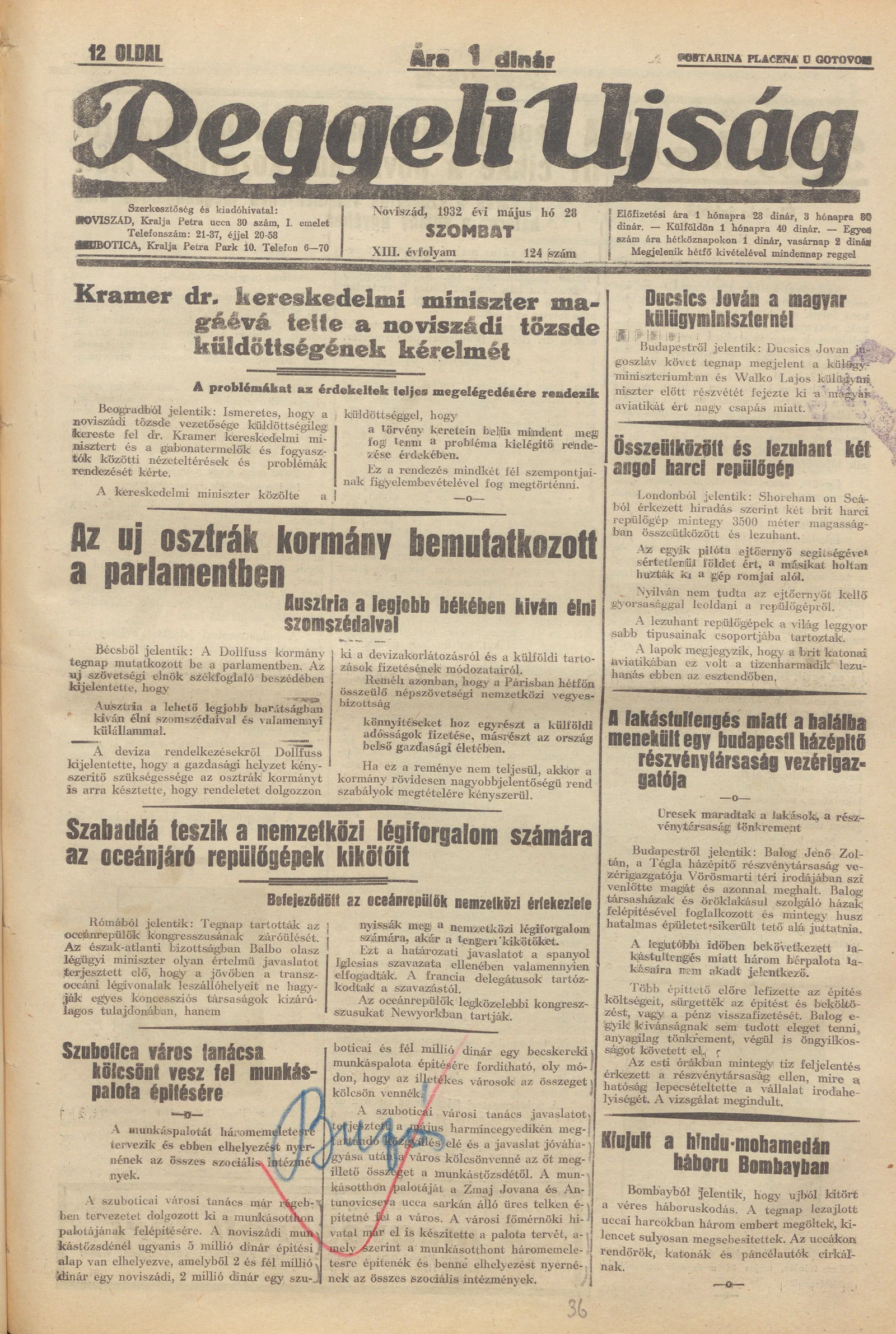 Reggeli Újság, 13. évf. 1932. május 28. 124. sz.