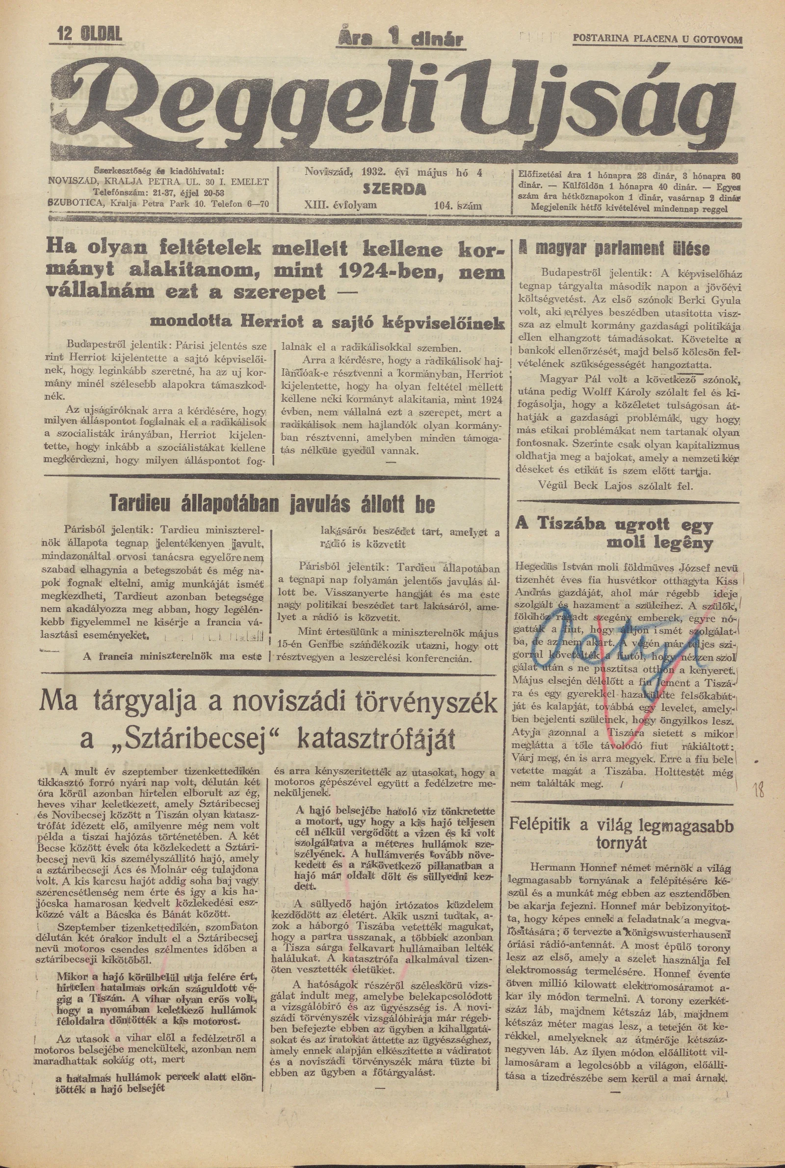 Reggeli Újság, 13. évf. 1932. május 4. 104. sz.