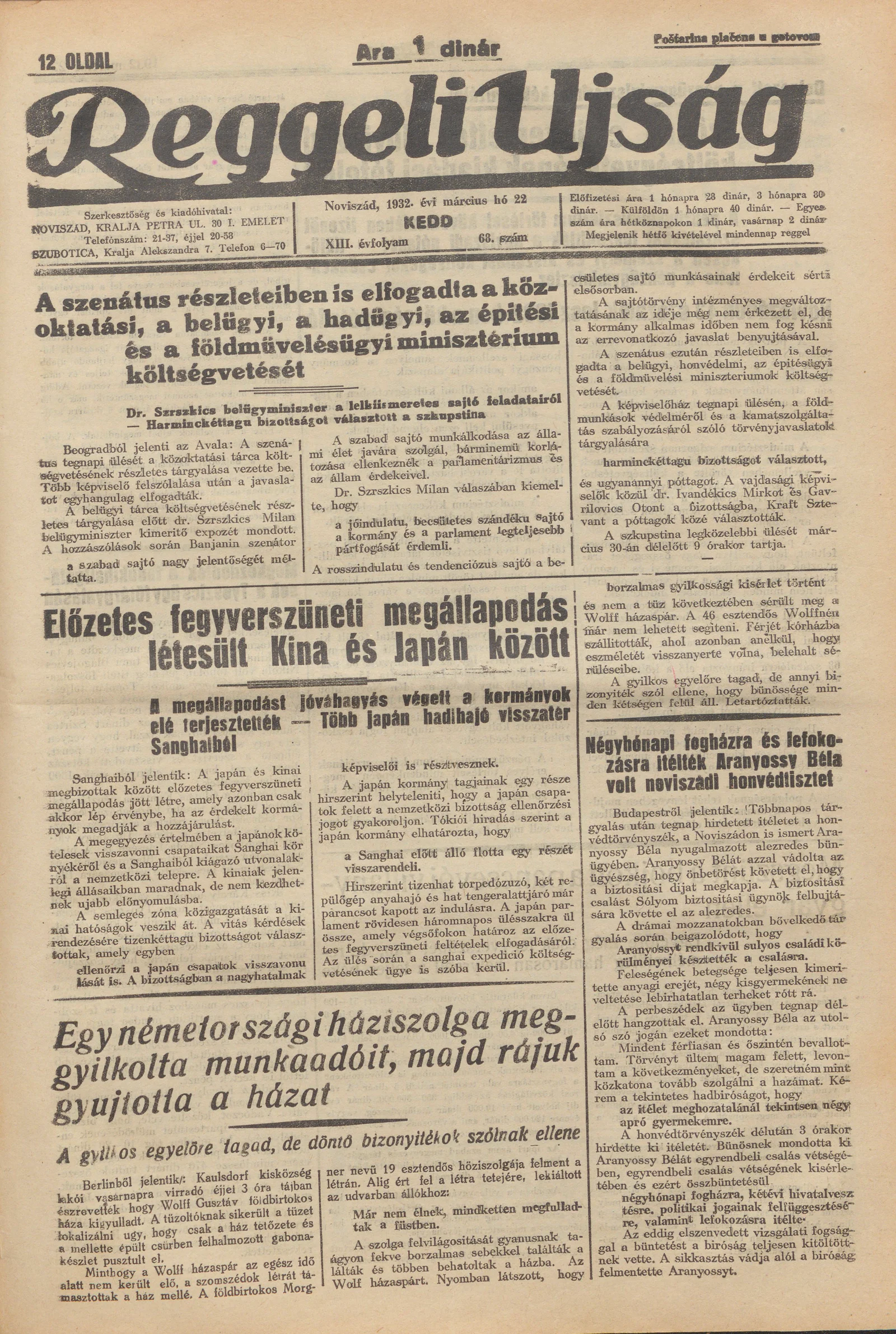 Reggeli Újság, 13. évf. 1932. március 22. 68. sz.