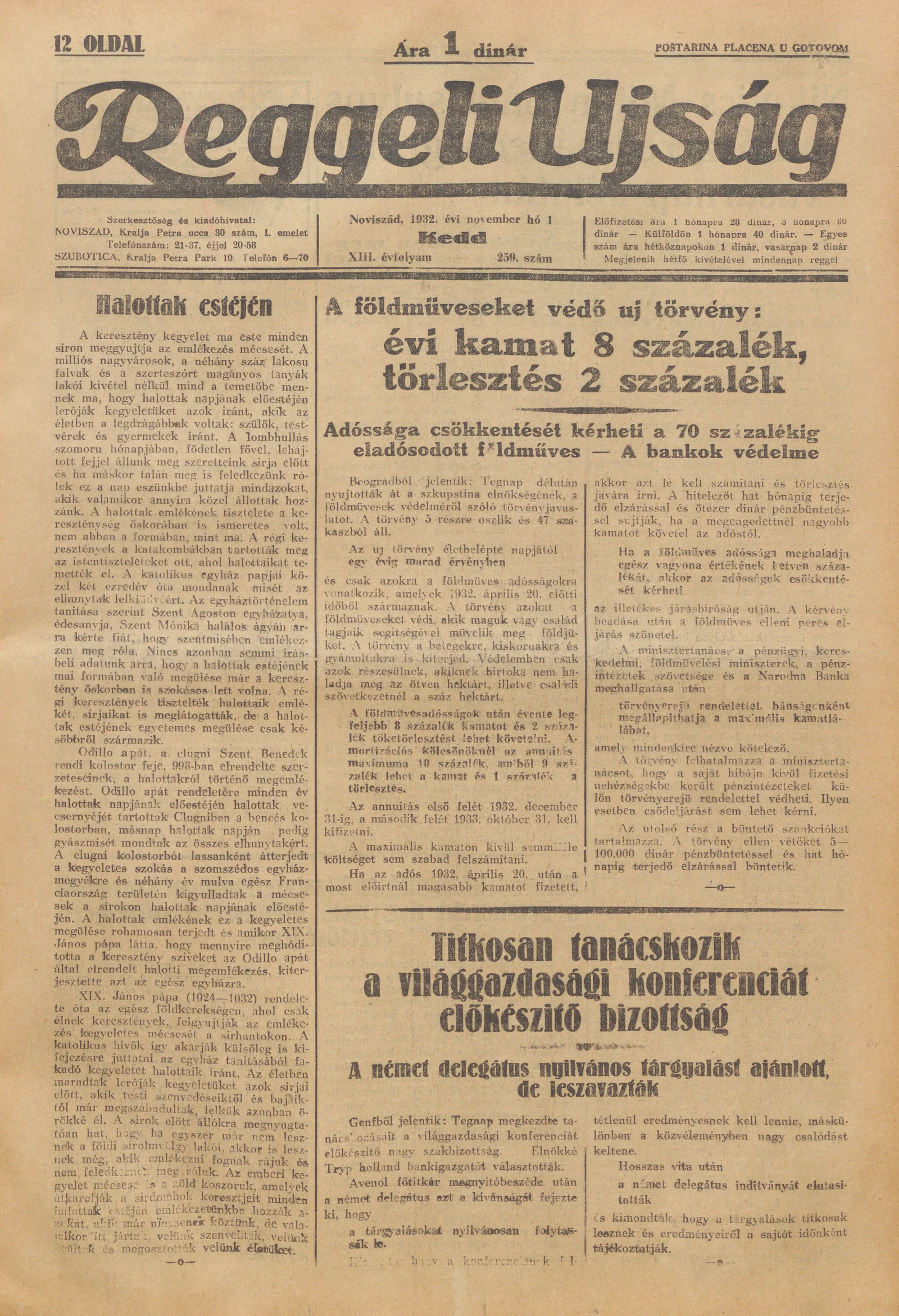 Reggeli Újság, 13. évf. 1932. november 1. 259. sz.
