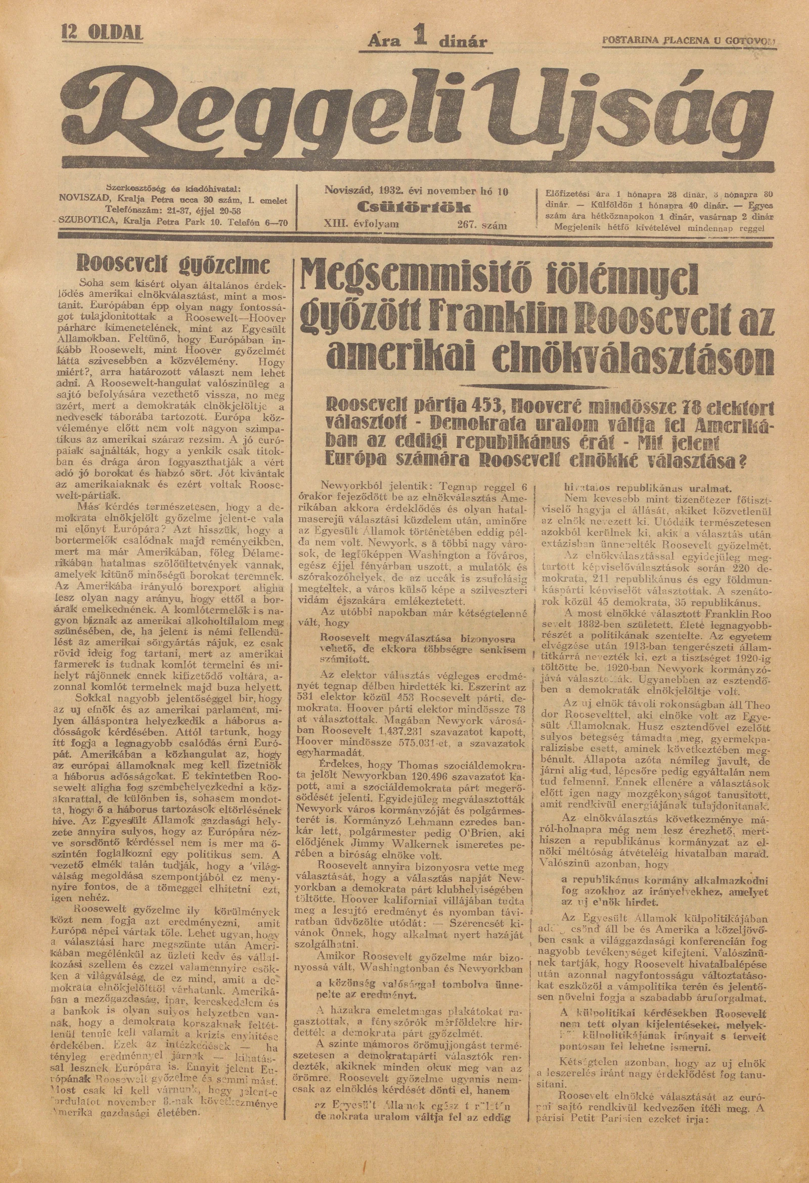 Reggeli Újság, 13. évf. 1932. november 10. 267. sz.